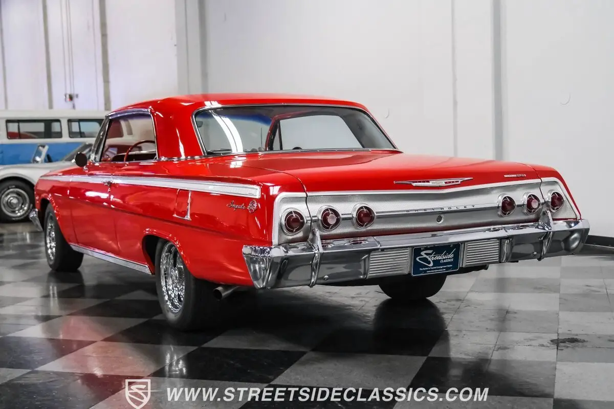 Here is a beautiful 1962 Chevrolet Impala SS 409. These muscle cars are loved by many because of their stance, body lines, and, of course, their power-to-weight ratio. But this one takes the cake with its Roman Red paint job, classic shiny wheels, gorgeous chrome trim-including the bumpers, and its very low-key stock appearance. This example should rack up plenty of trophies at car shows and draw attention wherever it goes.