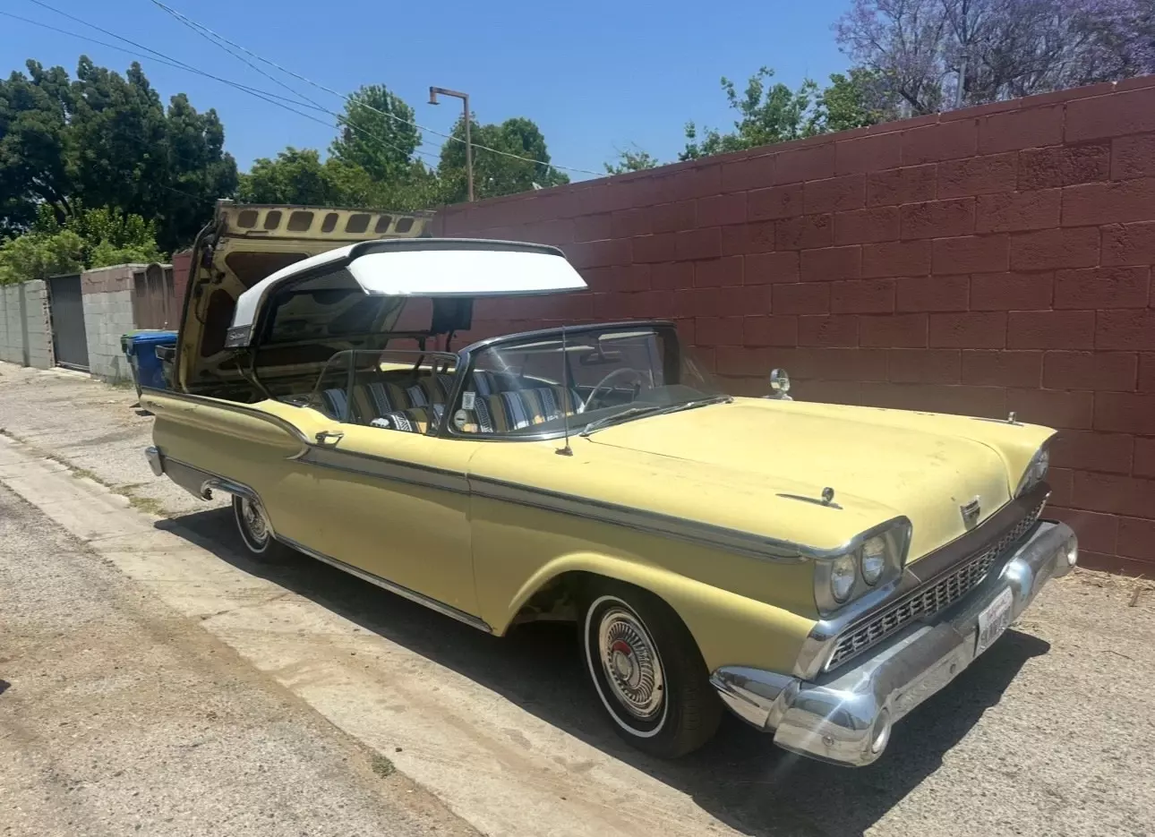 The 1959 Ford Skyliner is a classic car with a unique design and vibrant yellow color. The current owner has had it for 3 years, during which time it has been well-maintained and runs smoothly, making it suitable for weekend drives. With clean title and low mileage, this original Ford Skyliner is a great choice for car enthusiasts looking for a vintage vehicle with a timeless appeal.