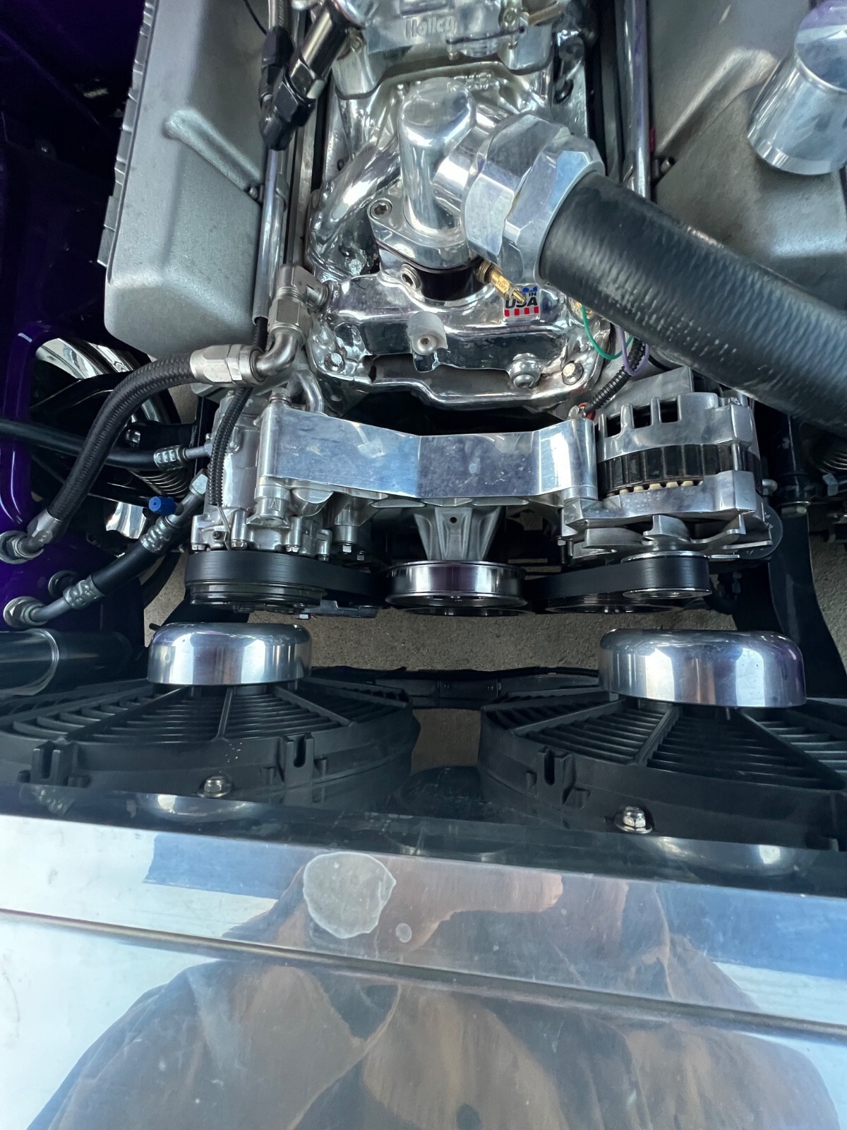 GM Performance 350, Upgraded Cam, Full Roller Valve Train (Lifters/Rockers) AFR Aluminum Heads, Edlebrock Air-Gap Manifold, Holley 4 bbl Carb, GM H.E.I. Ignition, Short Tube Ceramic Headers, Dual Crossover Exhaust, Serpentine Belt Drive, HD Aluminum Radiator, Billet Hood and Trunk Hinges, Rebuilt 700R 4 with Overdrive, Ford 9 inch with Limited Slip Rear Differential (350 ratio)