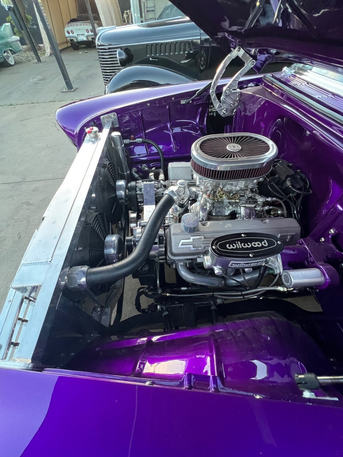 Custom Leather Interior, Center Console, Square Weave Carpet & Trimmed Trunk done by Howard’s LHC in Arizona, Pro-Car Bucket Seats, Vintage A/C and Heat, Chrome Ididit Tilt Steering Column Shift, Classic Instruments Digital Gauges, Kenwood Audio System, Polished Billet Dash Insert with A/C Vents, Stainless Cup Holders, Retractable Front Seat Belts, Rear Seat Belts.