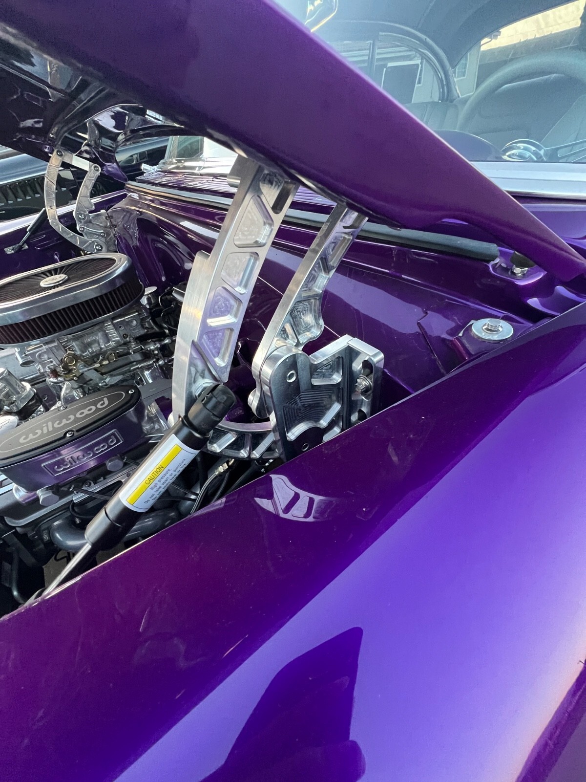 Roadster Shop Chassis Frame Rails, Heidt’s Independent Front Suspension, Power Rack & Pinion Steering, Tubular Control Arms, Front Coil-Over Shocks, Four Bar Coil-Over Rear Suspension, Wildwood Hydro-Boost 4 Wheel Disc Brakes.