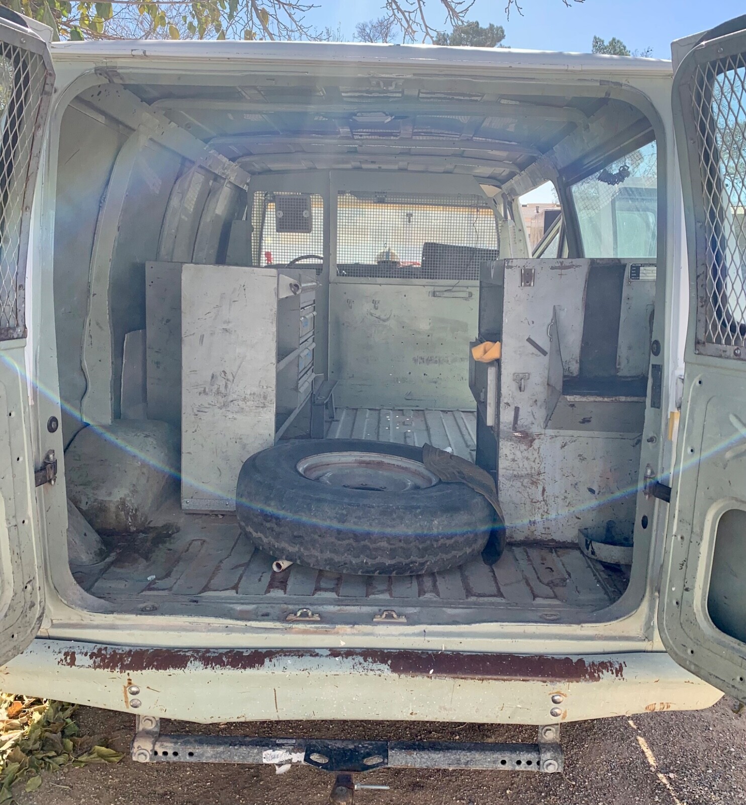 Here is a clean VIN Southwestern Bell Telephone work van that is up for NO RESERVE auction. The DMV check on this vehicle's VIN numbers come back clean, but this van is MISSING its title. It's not hard to get a title, but this auction does not come with this ownership document. The van runs and drives and was previously used for handyman/yard work on non-public roads as part of a private fleet of maintenance vehicles. The van comes with all items pictured, to include the hardhat and utility racks in the back. All glass is good and this is a DRIVER, not a project vehicle. Brand new battery, starts right up. Has keys. Will need new tires at some point soon (16”), but these are good enough to drive around with in the interim (I wouldn’t drive them around the world). Arguably, the 4.9L I6 was one of the best engines made by Ford. This van is 3/4 ton capacity. The appeal of this van, no disrespect to Ford lovers, is not that it is a blue oval truck, but that it is painted in the ORIGINAL Bell Telephone paint scheme, and it retains its nostalgic look. It is a very cool ride. Would be cooler if it were a Chevy, but whatever. We can't seem to solve global warming either, so there are still Fords on the road. Kidding aside, it’s a nice van. New battery.