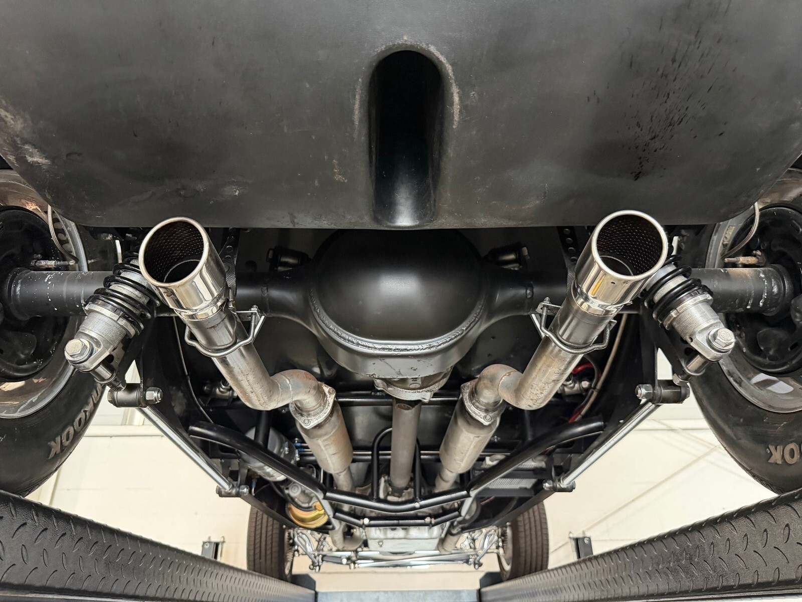 The fiberglass body is painted a super high gloss black, which when paired with just the right amount of chrome and polished pieces is an absolute show-stopper! Salt Flat wheels are wrapped in radial tires with the classic big & little look giving it just the right stance.