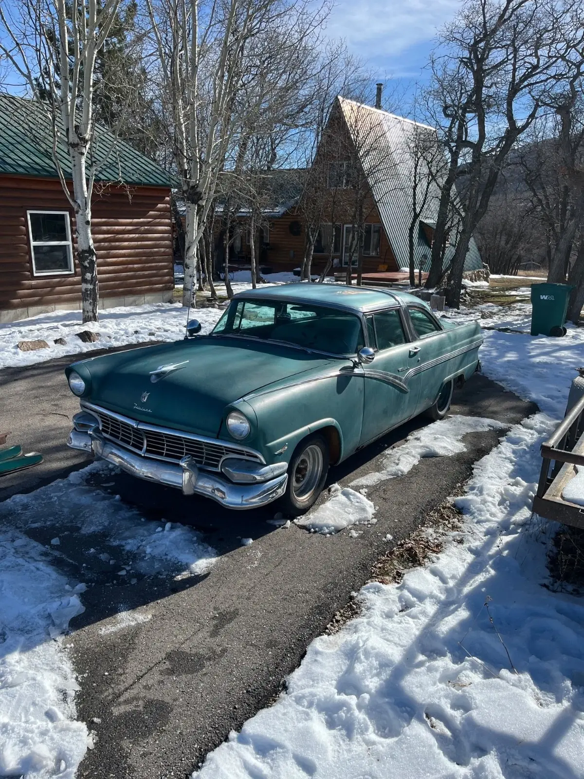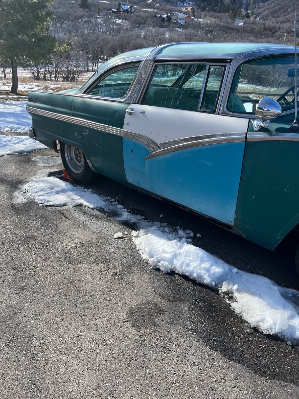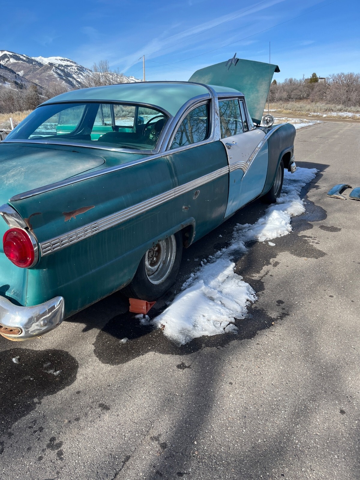 This is a very original 1956 Ford Crown Victoria. It has a completely original drivetrain from the radiator to the gas tank. Please check closely my EBay feedback score. I have over 1300 positive marks and no negative marks. I'm an old guy with too many old car restoration projects, and I selling my 1956 Ford Crown Victoria because I need the funds to pay for a convertible top for our 1962 Ford Sunliner convertible. My wife and I were married in 1962 and the Ford Sunliner is our "keeper." With this information in mind, I will explain in detail the positive and negative aspects of my 1956 Ford. I highly value my 100% positive feedback score, and with this goal in mind, I want to be sure the new owner of the Crown Victoria knows exactly what they are buying. On the positive side: I bought the 1956 Ford Crown Victoria with the intention of restoring it. This 56 Ford is very complete and is dent free and straight. The Frame and floors are dry and the hood, trunk lid, and doors align properly. The previous owner replaced the passenger's door with an original Crown Victoria door. The replacement Crown Victoria side door chrome badge comes with the car. It also has the original fender skirts, and replacement rocker panels for both sides of the car which are in the trunk. The original owner's manual is in the glovebox. As I mentioned, the Crown Victoria had been sitting for several years. With this in mind, I disconnected the gas line to the carburetor, hooked up a 12 volt battery, poured a little gas in the carburetor, and the engine fired right up. The engine runs good, with not unusual sounds or exhaust. The original interior is complete and in useable condition. The rear seat is in very good condition and so is the headliner. The front driver's side seat and the door panels are in place, but need attention. Again, please look closely at the photos. i cleaned the trunk and inspected it for rust. It is in good shape and the spare tire well is not rusted. On the negative aspects: My 1956 Ford sat for several years. There is a Utah Highway Patrol sticker on the driver's side of the windshield dated 1968. Back n the 1960s all Utah cars were required to have a vehicle inspection. This sort of confirms the date of storage. After sitting for a long time, the tires were old and weathered and didn't hold air. I replaced the bad tires with used tires to get the Ford to roll and to be loaded on to my son's trailer. There are several keys for the Ford, but the ignition key is bad. I've had to "hot-wire" the Ford to get the engine running. I have not tried to drive the Ford. I'm sure it needs brake work, as well as the fuel system cleaned before it can be driven. It rolls good and is easy to load onto a trailer. The transmission shift works well from Park to Neutral, and into the Drive gears. I'm sure there are other issues, but this is a good restoration project that with a little work could be a daily driver. If you have any concerns or questions, please give me a call. I will candidly answer your questions. My name is Bob, and my phone number is (801) 745-5835. I enjoy talking about old cars and I want to be sure the new owner knows exactly what they are getting. I bank at Wells Fargo and would prefer a funds wire transfer for the payment, but is will accept any payment method you are comfortable with. I have a clean, Utah title, in my name. I will work with you regarding the pick up schedule. Good luck bidding, and I hope the old Ford finds a good home.