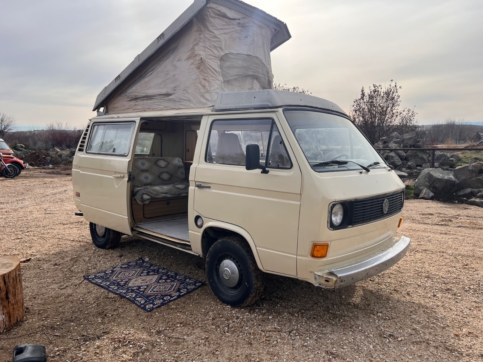 This bus runs amazingly well! The engine was rebuilt by the previous owner three or four years ago. It is only been driven probably 5000 miles since then it will need a new canvas for the pop top, but the bed is in good condition. It will still need some tinkering here or there, but it’s a great place to start!