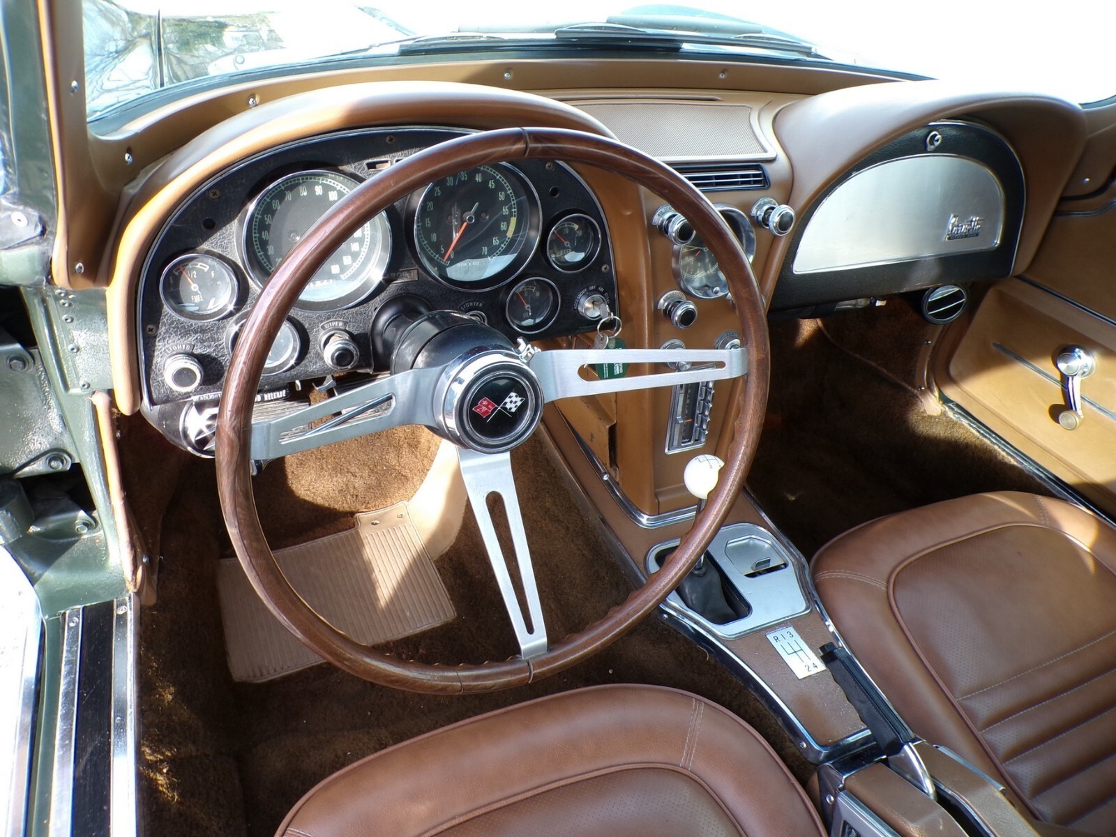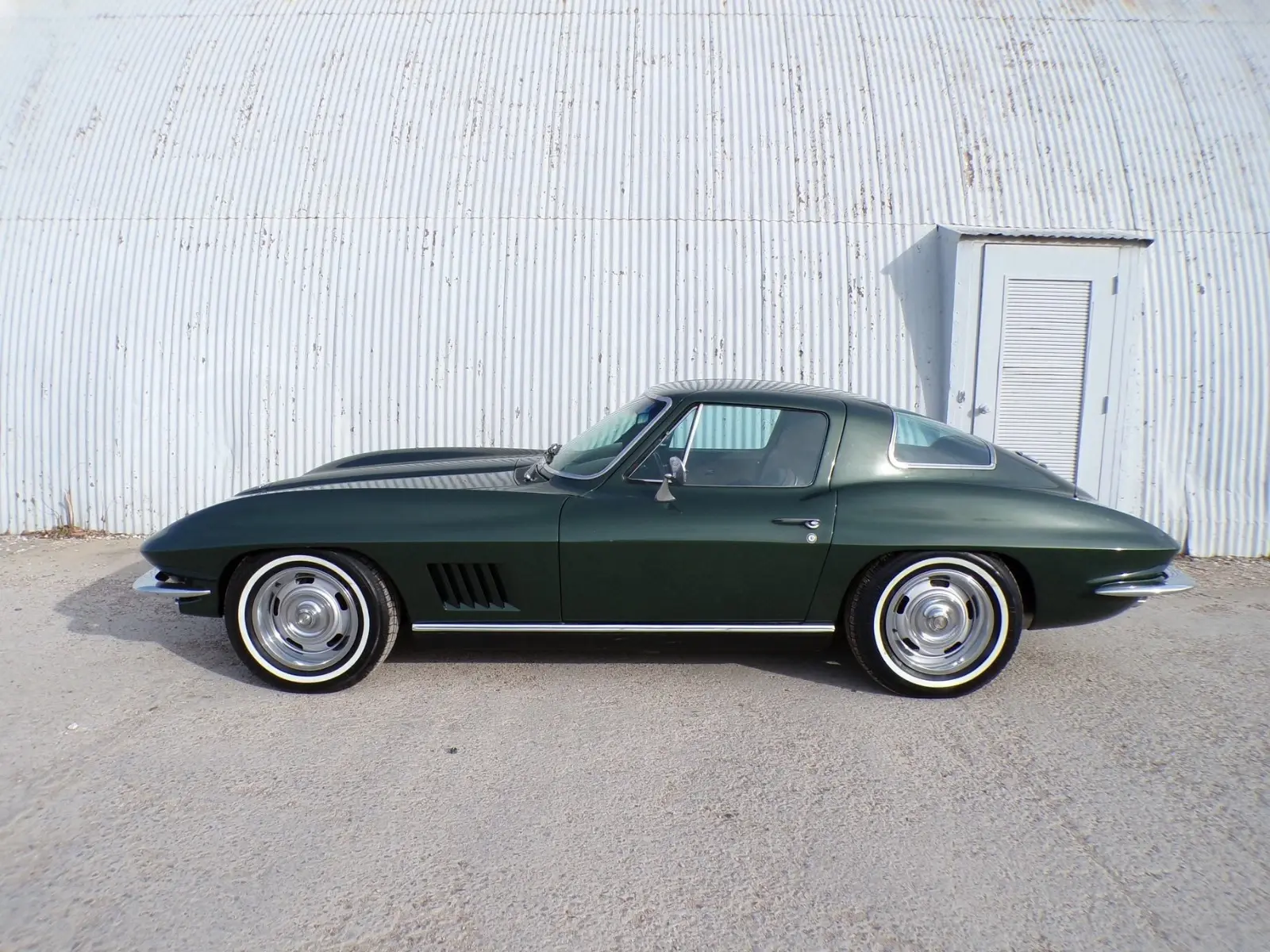 SEE MY PHONE NUMBER AND 116 DETAILED PHOTOS ON MY WEBSITE WWW.PETESCLASSICCARS.COM . NO TRADES, NO CARAMEL PAYMENTS, NO EBAY SECURED PAYMENTS. NO FINANCE COMPANY PAYMENTS. I HAVE BEEN IN BUSINESS 40 YEARS. SOLD AS IS. NO WARRANTY, NO ADJUSTMENTS. LOOK AT ALL 116 PHOTOS. VEHICLE AND TITLE RELEASED WHEN FUNDS CLEAR. PREFERRED PAYMENT IS BY BANK WIRE TRANSFER OR CASH IN PERSON. I WILL FEDEX THE TITLE WHEN FUNDS CLEAR. EBAY BUY IT NOW DEPOSIT NON REFUNDABLE. THIS 1967 CHEVROLET CORVETTE COUPE IS A NUMBER MATCHING SURVIVOR WITH RARE OPTIONS. L79 - 350 HP, 327. FACTORY 4 SPEED, FACTORY AIR CONDITIONING. 4.11 POSI TRACTION REAR AXLE, M21 4 SPEED,,N36- TELESCOPIC STEERING COLUMN,AM FM RADIO THAT WORKS, SUN RAY TINTED GLASS. THIS CAR WAS FOUND IN KANSAS IN DRY STORAGE WITH OWNERSHIP BACK TO THE 1990'S. MILEAGE SHOWN ON THE CAR AND THE TITLE IS 121540 MILES. ONE REPAINT IN ORIGINAL GOODWOOD GREEN METALLIC #983. THE BODY IS UN HIT, WITH SHARP EDGES, GOOD BODY PANEL ALIGNMEN, UNCUT WHEEL LIPS AND NO DOOR SAG. THE CARS FRAME AND BIRDCAGE HAVE NO RUST THRU OR PATCHES. THIS CAR WAS REPAINTED A WHILE AGO BEFORE BEING PUT INTO STORAGE. A HIGH QUALITY JOB. IT NOW HAS A FEW SMALL CHIPS AND A FEW DEEP SCRATCHED NEAR THE ANTENNA AS SHOWN. THE FRONT FLOOR ON EACH SIDE HAS A CRACK IN THE FIBERGLASS AS SHOWN. THE GLASS IN THE CAR IS MOSTLY ORIGINAL EXCEPT THE WINDSHIELD AND A SIDE WINDOW. THE INTERIOR IS MOSTLY ORIGINAL AND IN GOOD SHAPE -SADDLE VINYL #420. THE CARPET AND HEADLINER WERE REPLACED WITH NON ORIGINAL TYPE MATERIAL AT ONE TIME. HERE ARE THE MECHANICAL DETAILS- THE ORIGINAL MOTOR WAS REBUILT AT ONE TIME 30 OVER WITH TRW FORGED PISTONS. ENGINE BLOCK CASTING NUMBER- 3892657. ORIGINAL MATCHING NUMBER ENGINE. HAS THE ORIGINAL DATE CODED 202/160 HEADS. ORIGINAL 350HP ONLY ALUMINUM INTAKE # 3890490. ENGINE CASTING CODE- HT 327/350H, 4 SPEED. REAR AXLE CODE- AP 4.11 POSITRACTION,327 4 SPEED. THE CAR IS A FACTORY 4 SPEED, BUT THE MUNCIE M21 TRANSMISSION IS NOT NUMBER MATCH AND HAS M22 GEARS, THE 600 HOLLEY CARB IS CORRECT, BUT NO DATES. MAYBE A WARRANTY CARB? 5 ORIGINAL RALLY WHEELS WITH NEWER WHITE WALL RADIAL TIRES. I CHARGED THE A/C AND IT BLOWS COLD, THE CLUTCH SPIN, BUT IT IS WINTER HERE, HAS THE JACK. IT ALSO HAS 4 T3 HEADLIGHTS. BOTH HEADLIGHTS WORK, BUT THE RIGHT ONE IS SLOW. THE CAR RUNS AND DRIVES WELL. WHATS INCORRECT OR NOT WORKING- HAS A HURST SHIFTER, HEADERS,WRONG DISTRIBUTOR,HORN NOT WORKING, TELESCOPIC COLUMN IS NOT WORKING PROPERLY. LEFT VENT WINDOW CRANK IS NOT WORKIN, ODOMETER? LIGHT WARNING LIGHT STAYS ON. LEAKS A SMALL AMOUNT IF OIL NEEDS BACKUP LIGHT LENS REPLACE, AND NOW I HAVE AN ORIGINAL BETTER SET. ALL IN ALL, THIS IS A GOOD CAR WITH AN EXCELLENT BOD, NICE PAIN, GOOD INTERIO, WITH RARE OPTIONS. IT ALSO HAS ITS ORIGINAL VIN TAG AND TRIM TAG WITH ORIGINAL RIVETS THE BUILD DATE WAS JAN, 1967 F-14