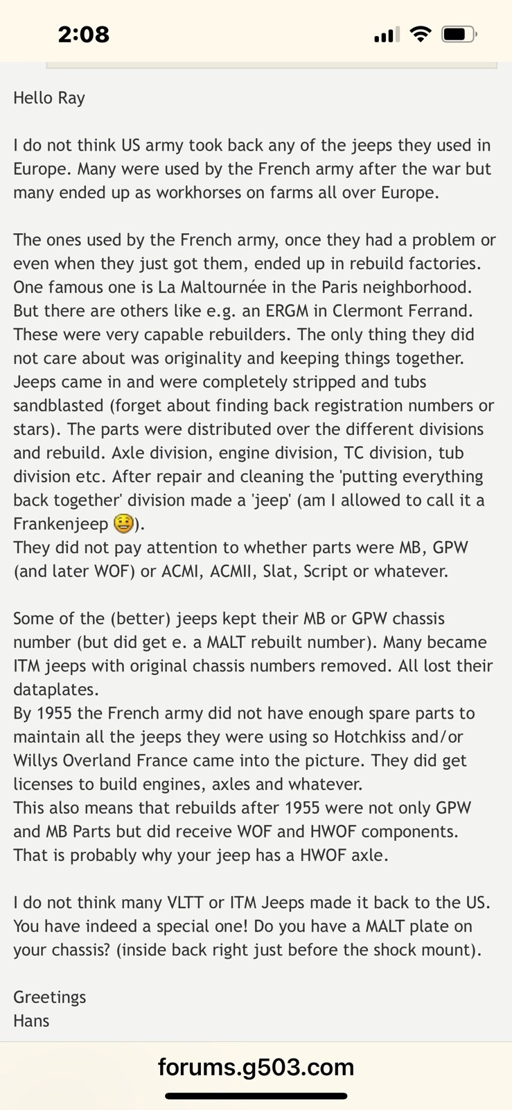 Very Rare original example of a Willy’s M201 Hotchkis . (Since there was no option for it I am listing as MB) In all reality it is not only identical to MB or a Ford GPW but restored for the French army after the war using GPW and MB components. These were greatly improved it many ways. Titled as 1946 MB Willy’s this is a rare Hotchkiss m201 Willy’s . Same as GPW or MB but made better, faster and stronger. in France from GPW and MB’s. 24 volt system from factory this is absolutely original and solid. Very few exist in the USA . (READ THE DETAILS IN THE ARTICLE I AM POSTING IN THE IMAGES)