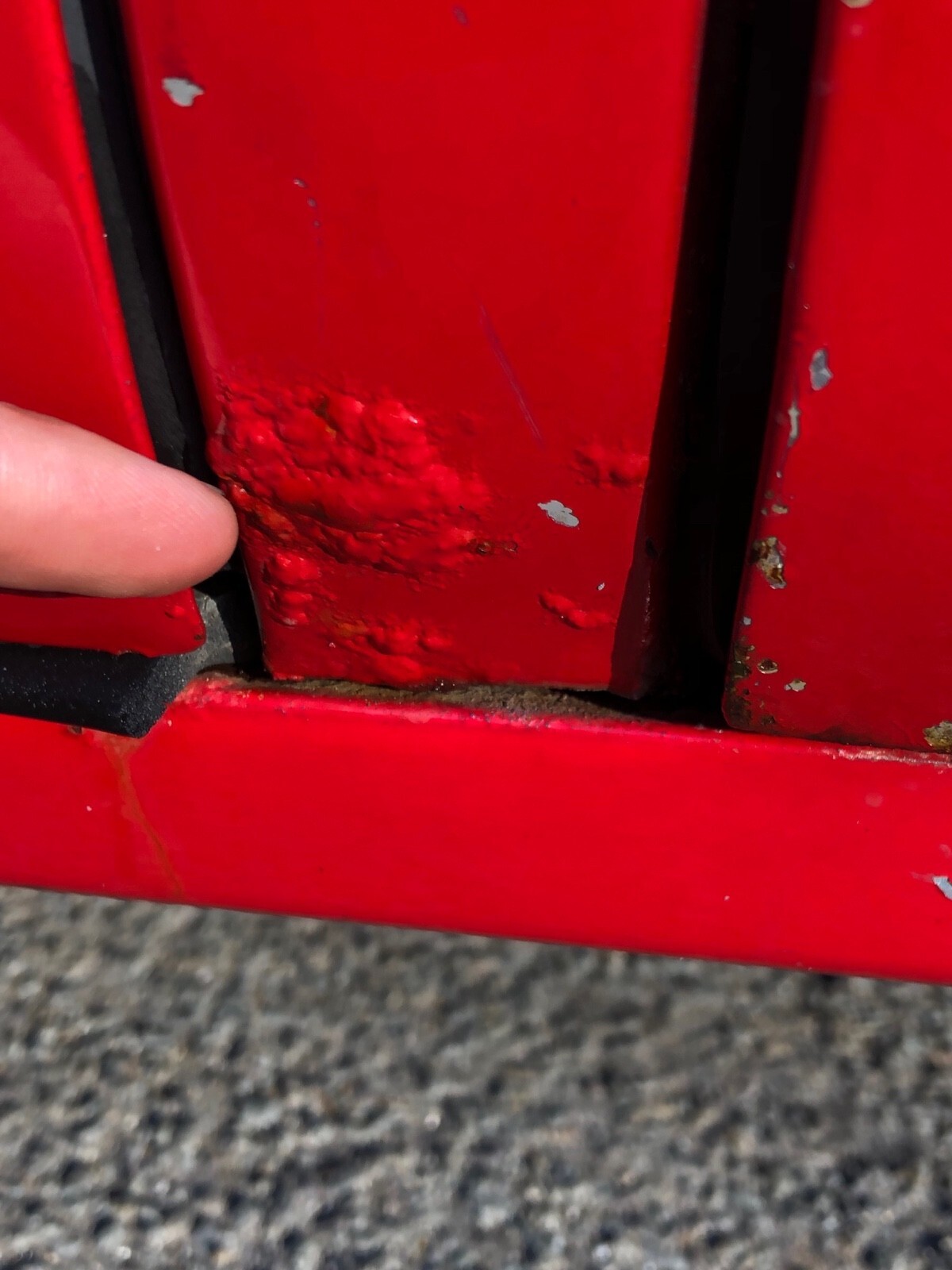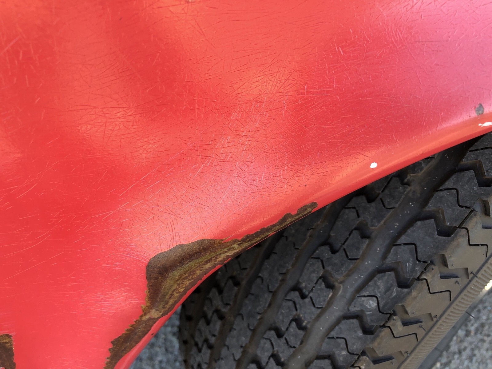Cons: some bubbling and minor scale on bottoms of doors pictured. Also has a ding in front left fender pictured. Speedometer cable needs replacement. Needs wiper blades. Few rock chip repairs on windscreen.