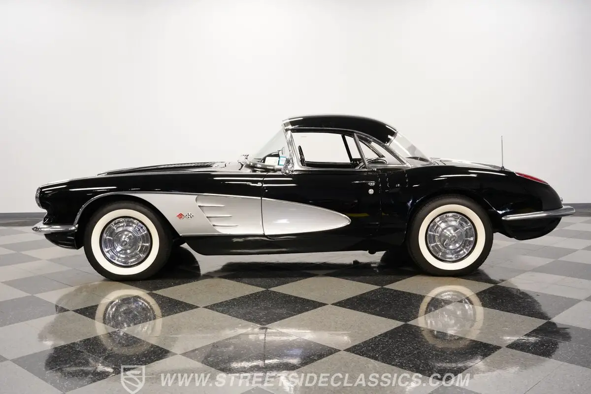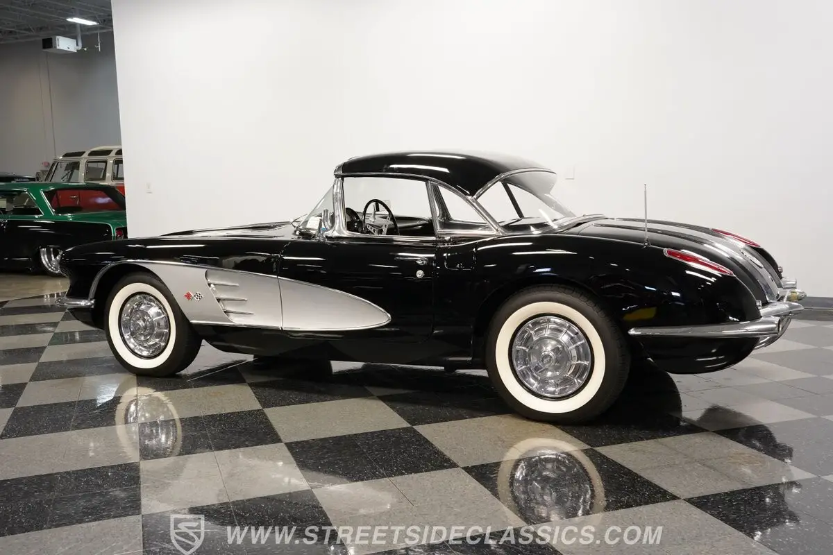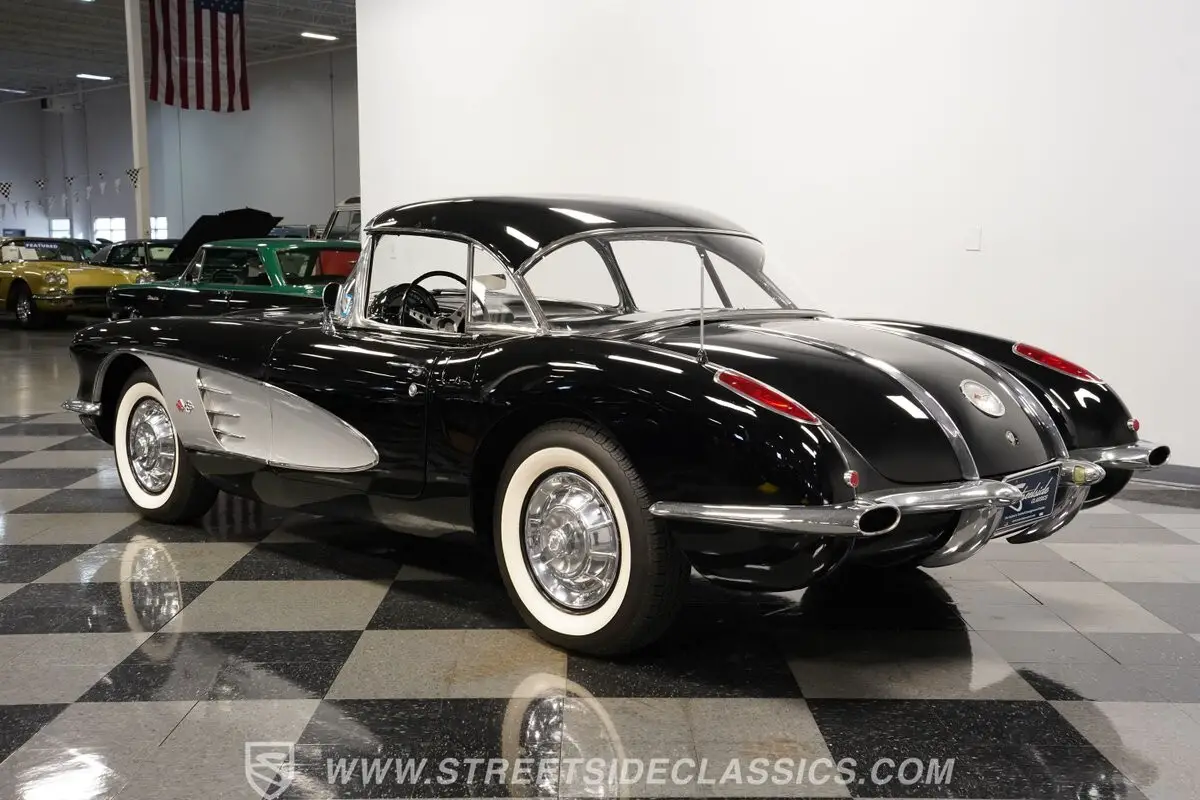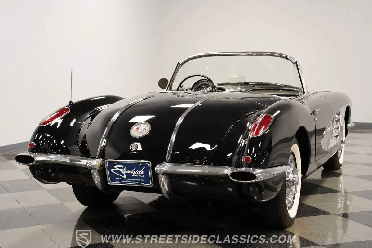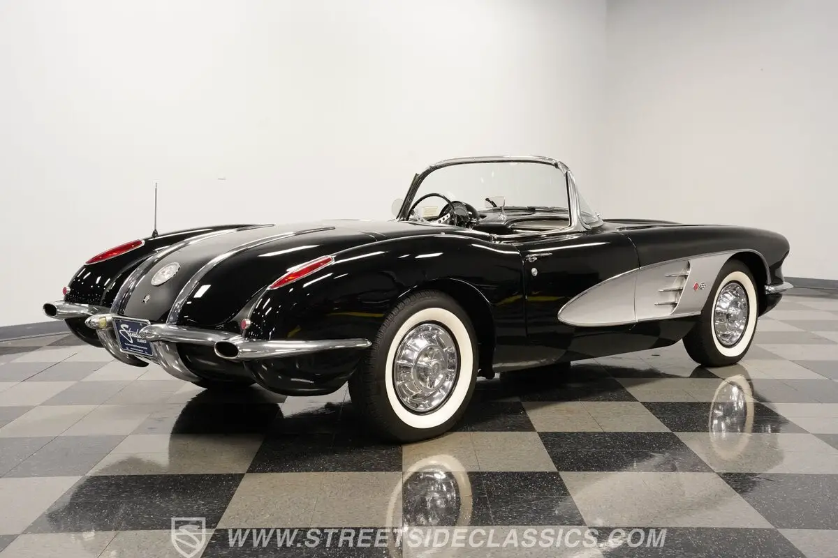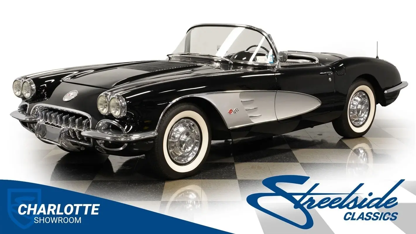 Experience the allure of a bygone era with this classic 1958 Chevrolet Corvette, a symbol of American automotive passion and timeless style. This iconic C1 Corvette is more than just a car; it's a rolling piece of history that evokes the spirit of the 1950s, when cars were designed to captivate hearts and turn heads. Its glossy black finish with contrasting silver coves hints at the elegance and performance beneath the surface, inviting you to imagine the stories it could tell. If you're seeking a vintage ride that blends nostalgia with undeniable presence, this Corvette is ready to make its mark in your collection.
