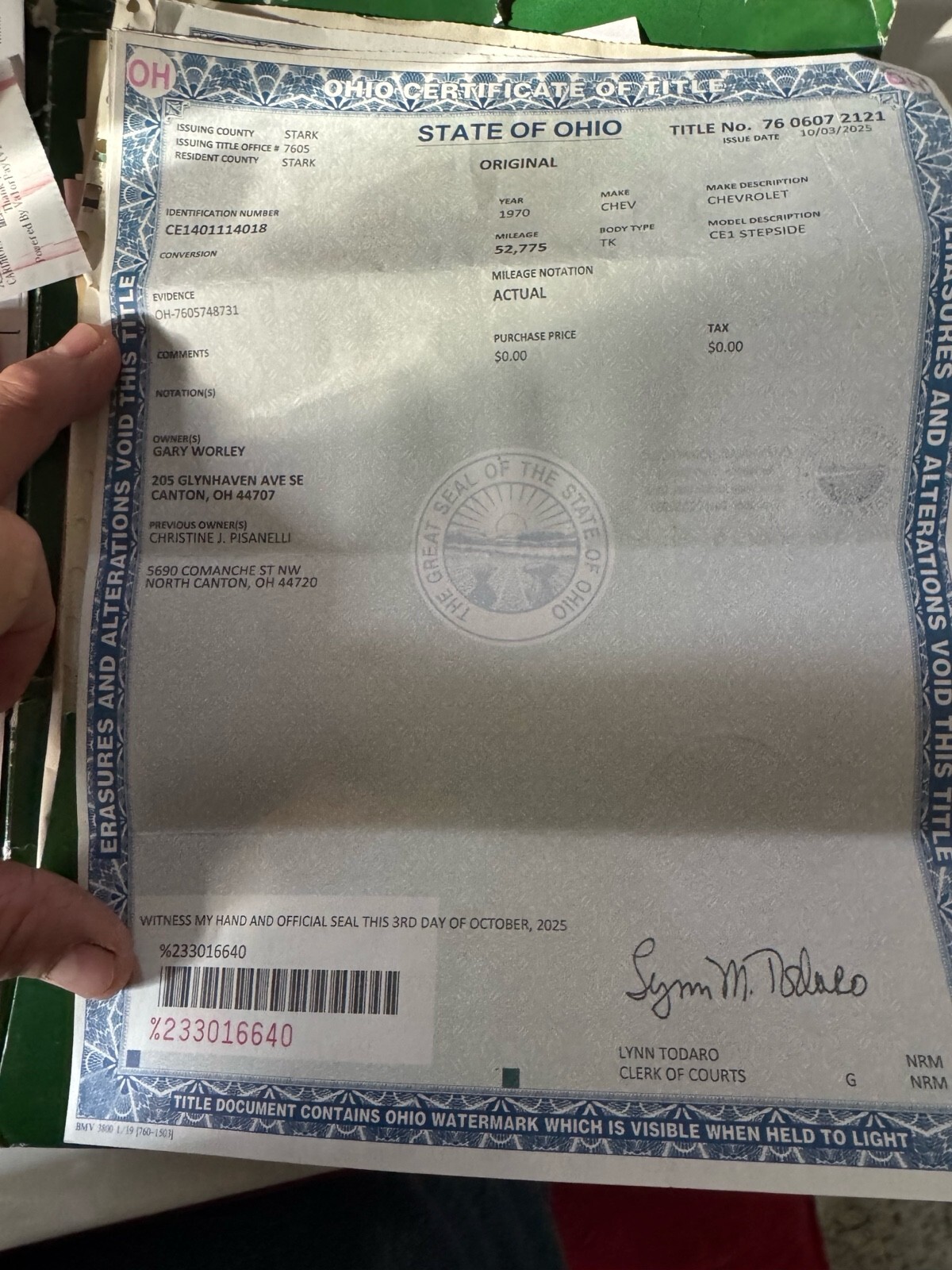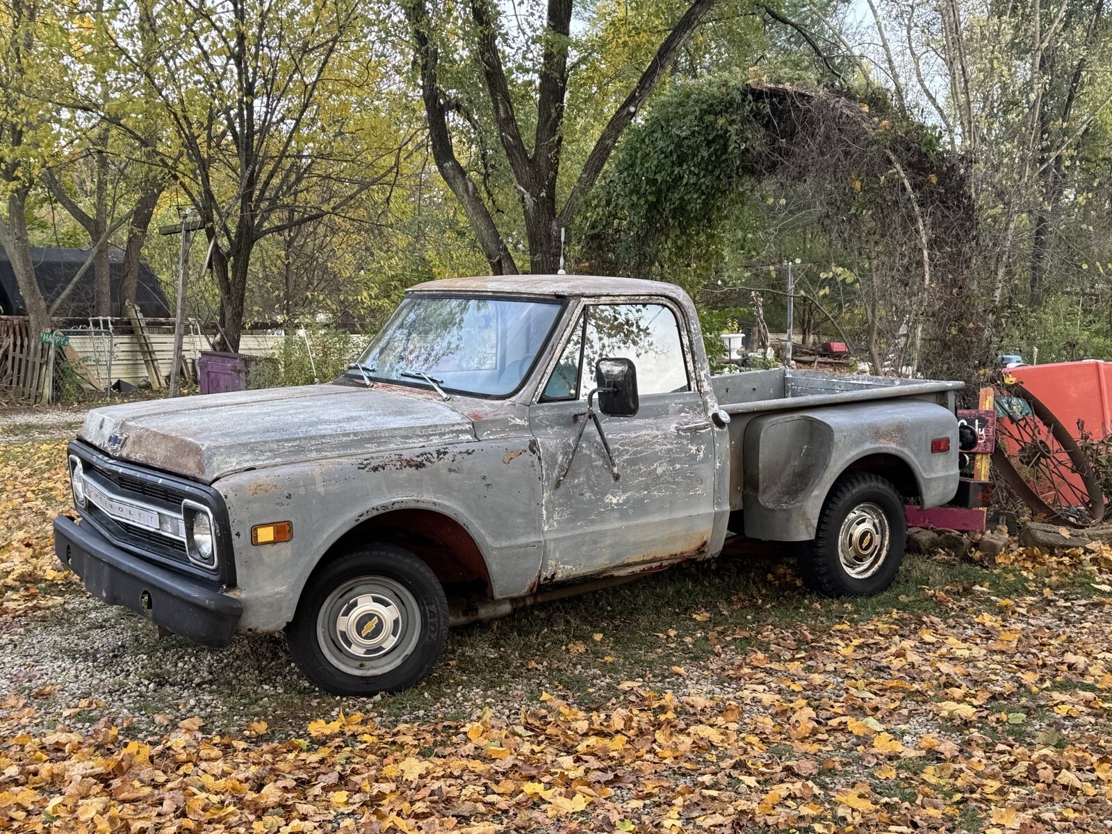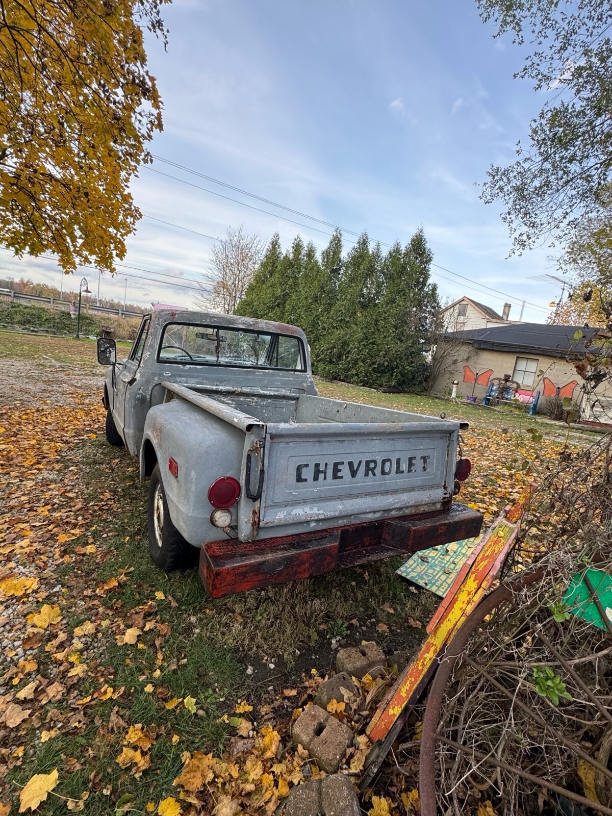 1970 Chevy step side truc, Truck does run and driv, No Breaks needs Master Cylinder. Needs complete restoration, Nice Starter Project Truck . Bed boards are rotten but there still. Frame is fine . Needs rockers may need lots of other stuff.