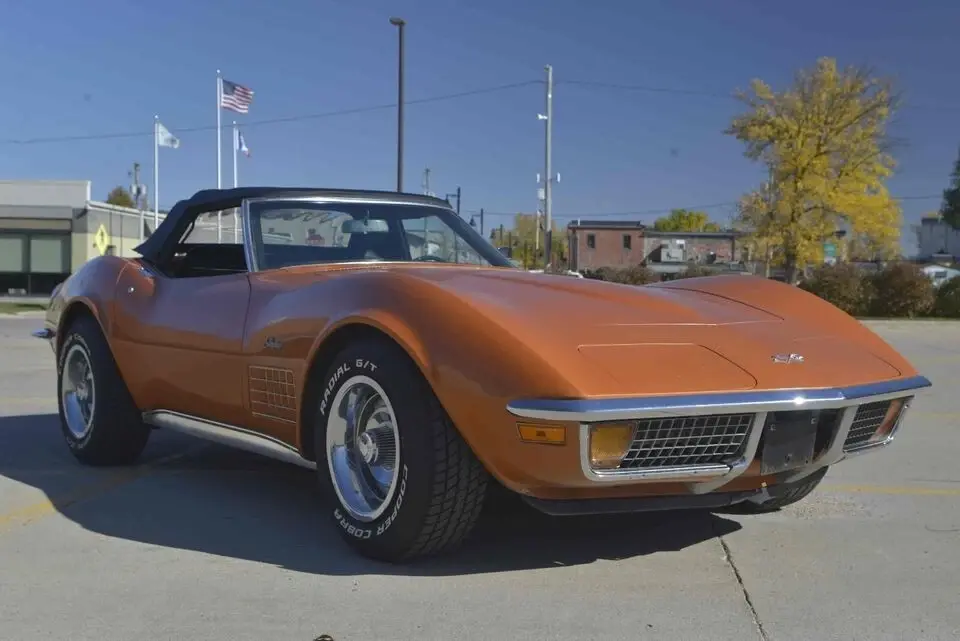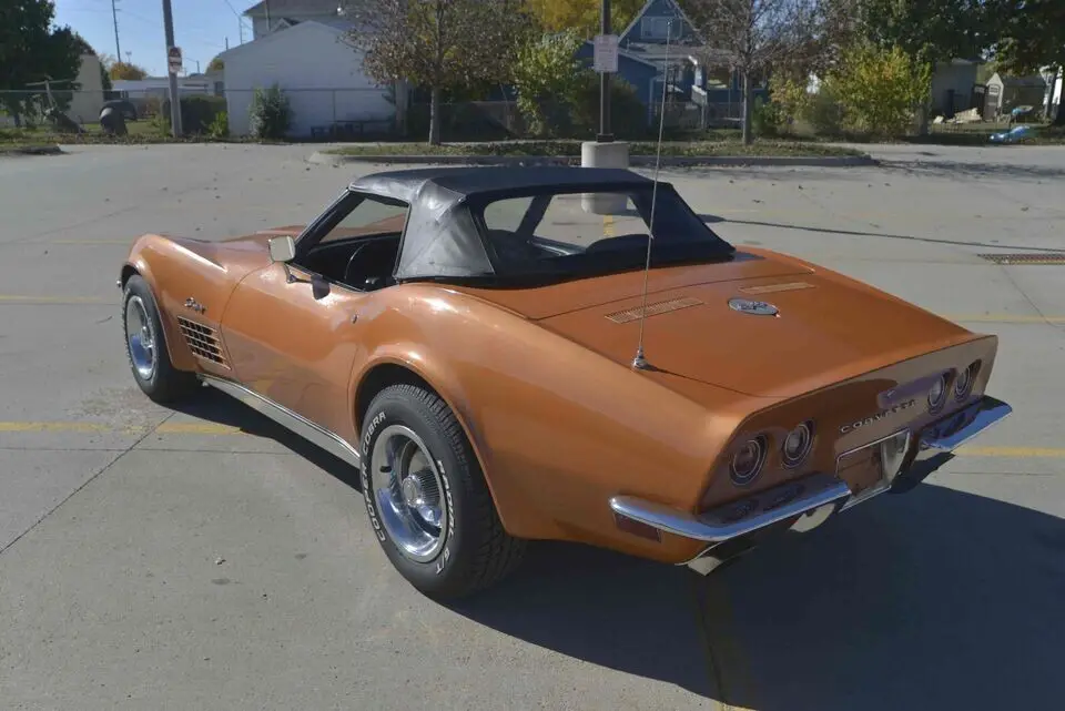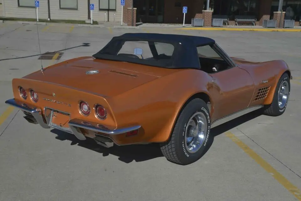An extremely original Ontario Orange 1972 Corvette Stingray convertible. The car retains the original block, heads, intake manifold, carburetor, exhaust manifolds, starter, transmission and differential. The VIN of the car is 1z67k2s502069 and car is equipped exactly as delivered new. Base motor, 4 speed, 3:36 posi and AC.All original documentation is included, including the original order sheet, window sticker, owners manual.