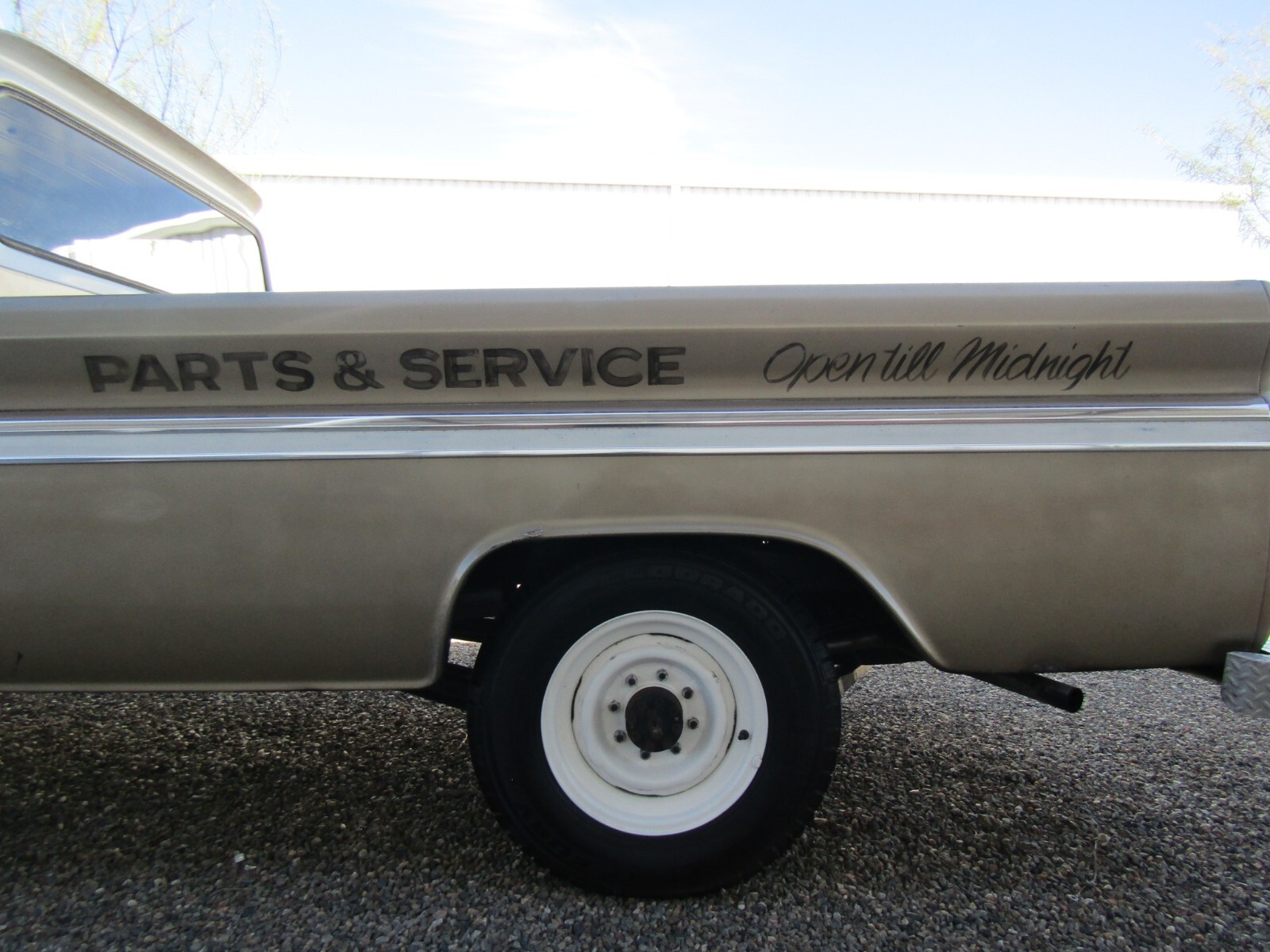 Everything works on this truck just the way it should right down to the AM radio,gauges,horn,wipers,etc. It is all original paint,comes with the original split rims and Silvertown tires in the back of the bed. The truck has newer rims and 6 ply 16 inch tires on it now. Original wood bed in great shape, All original interior in excellent shape. The lettering on the truck looks as old as the truck. The paint has multipal scratches as you would expect for a 60 year old truck. It has one rust spot on the whole truck about the size of a quarter located just above the left rear wheel. It is a 6 cylinder 250 engine.The truck runs great and the three on the tree standard shifts great. The underside is rock solid but has been touched up with some black paint with evidence of some surface rust. I have put about 320 miles on the truck since I have owened it in the last 5 years. The previous title milage was 38932 miles and it now has 39252 miles. Please message me with any questions or imfo you may have on this gem. I have many more pictures that I could send as I was limited to only 40 pictures on this add. The truck is located in Lake Havasu AZ and I can asist in shipping.Thank you and have a great day.