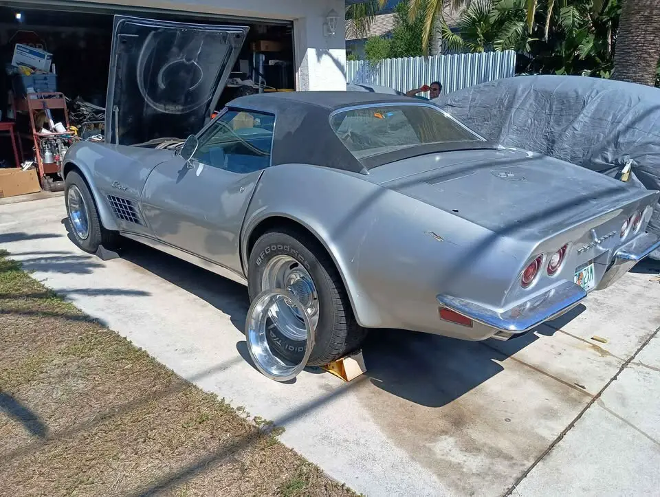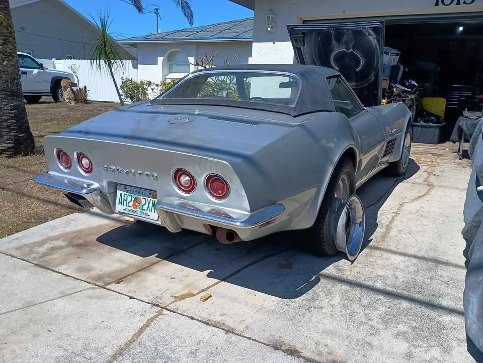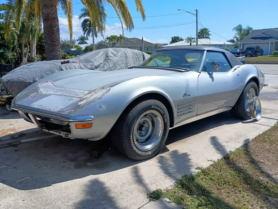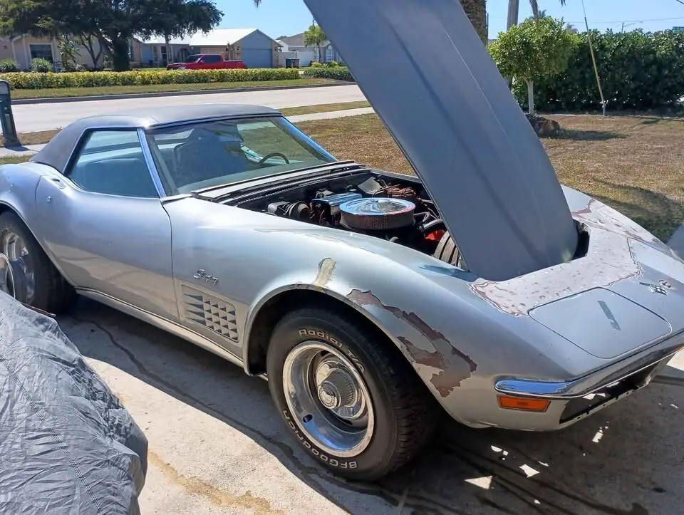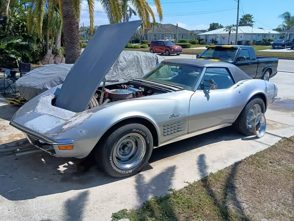 This is a 1971 Chevy Corvette Convertible 350 4-Speed Numbers matching running and driving project. I bought the car around a year ago from Georgia. I spent time and money... Replaced the fuel tank & sending unit, new rubber lines & fuel filter, new metal hard line from pump to carb, new fuel pump, cleaned the carb / accelerator pump, new points, cap & rotor, new plugs, new valve cover gaskets, high quality oil change using Penn grade oil, replaced gear oil in the trans, sorted the vacuum system out for the headlights, replaced one actuator and two control valves. The engine is original to the car, the trans is a heavy duty Muncie big shaft with drain plug, VIN on the case matches the car. The shifter does need some adjustment or possibly rebuilt (its sloppy) Brakes work, tires hold air. Hard Top only. New radiator - missing the top mounting bracket and 2 rubber cushions on the bottom.Newer carpet is just sitting in the car, door panels and seats are not properly installed. The frame is not rusty (no rot) I have never driven the car on the road, only moved it around the yard and on and off of the trailer. The rear diff should have a gear oil change... I can feel the posi unit clutches grabbing. The reason for the rebuildable title is an insurance company at some point must have paid out for some damage to the front of the car. When I got it, the left headlight door was damaged and to the left of the headlight door needed a repair along with another repair between the headlight door and the hood. I was told that the car rolled down a driveway and hit a parked vehicle. I don't have any other info than that. While I was working on that left headlight, I did replace the header bar (where the headlight frames attach) as it was loose from the incident and wasn't sure if it had any issues. I have kept the receipts for the new radiator, the header bar, one new actuator and two control valves. I believe I will need a receipt for the headlight door that I owned before I bought the car to give to DMV to have the car inspected.