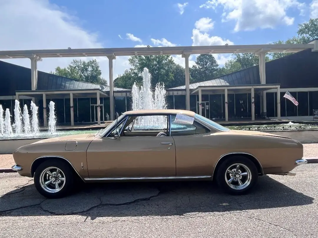 The 1965 Chevrolet Corvair is a classic coupe with a tan interior and bronze exterior. This vintage car has a sleek design with only 2 doors, making it a stylish and unique choice for automotive enthusiasts. With 97,220 miles on the odometer, this Corvair is sure to turn heads on the road with its automatic transmission and high-quality 500 block aluminum engine. Ideal for collectors or those looking for a spacious 5-seater with a hint of nostalgia from the 1960s.