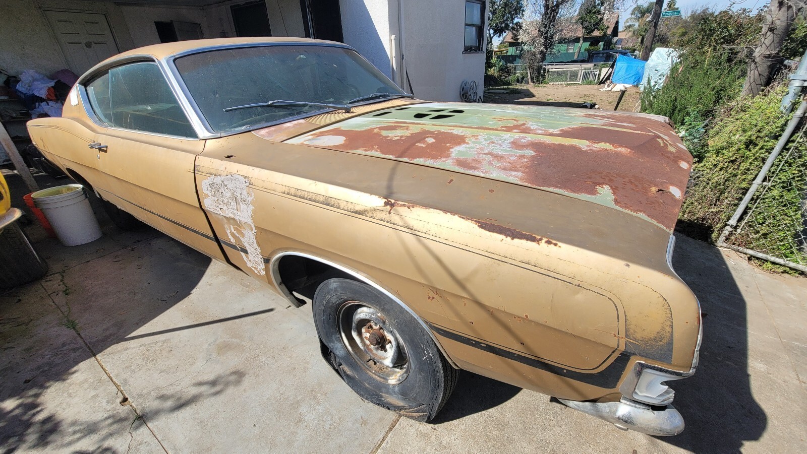 This is a 1968 Ford torino gt rolling shell this is a project no motor or transmission. Interior is also missing. it has rust on the floor pan. This car needs full restoration. title is missing driver side door does open sometimes with the key however passanger door does not open at all. it does have all windows. buyer ir responsible for pick up or shipping.