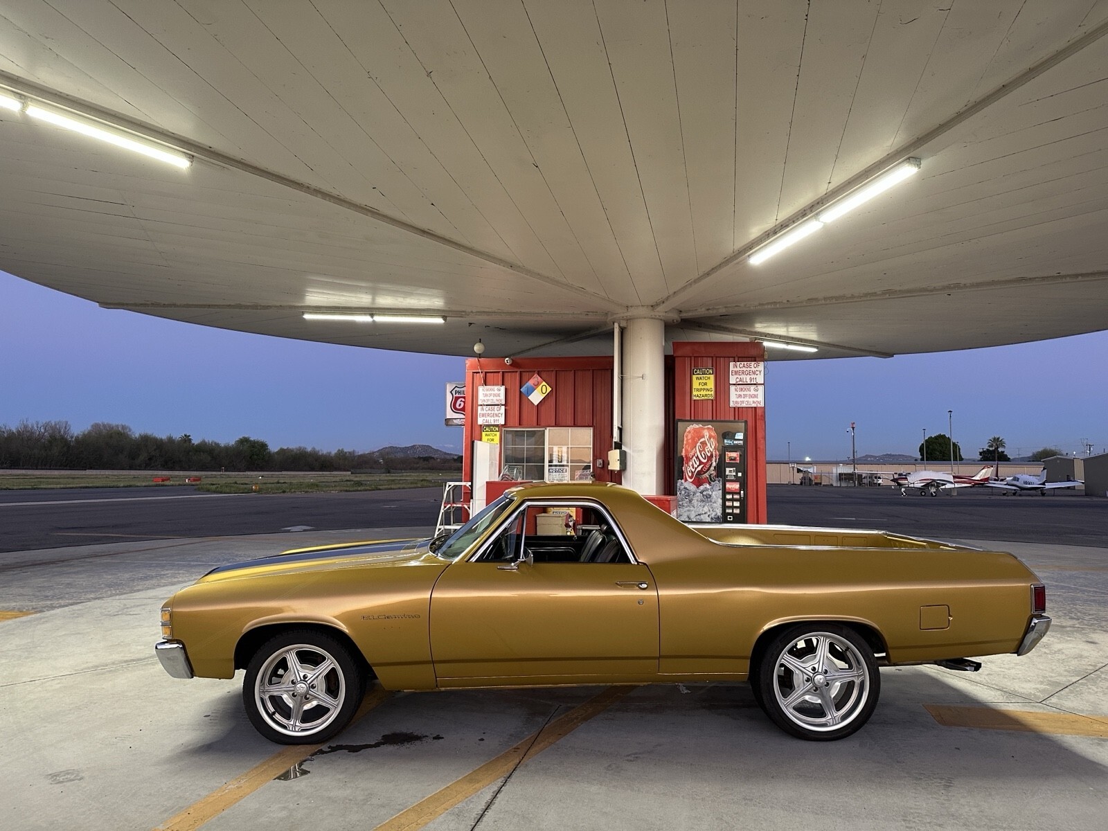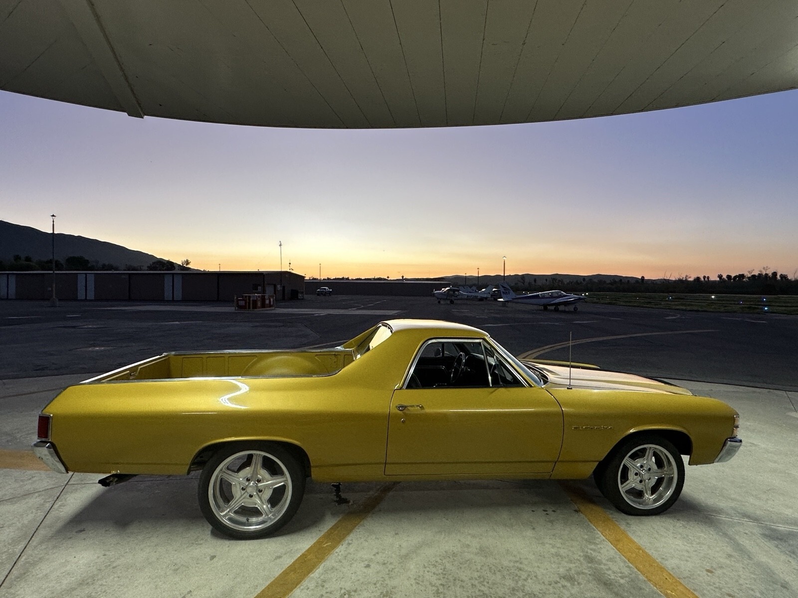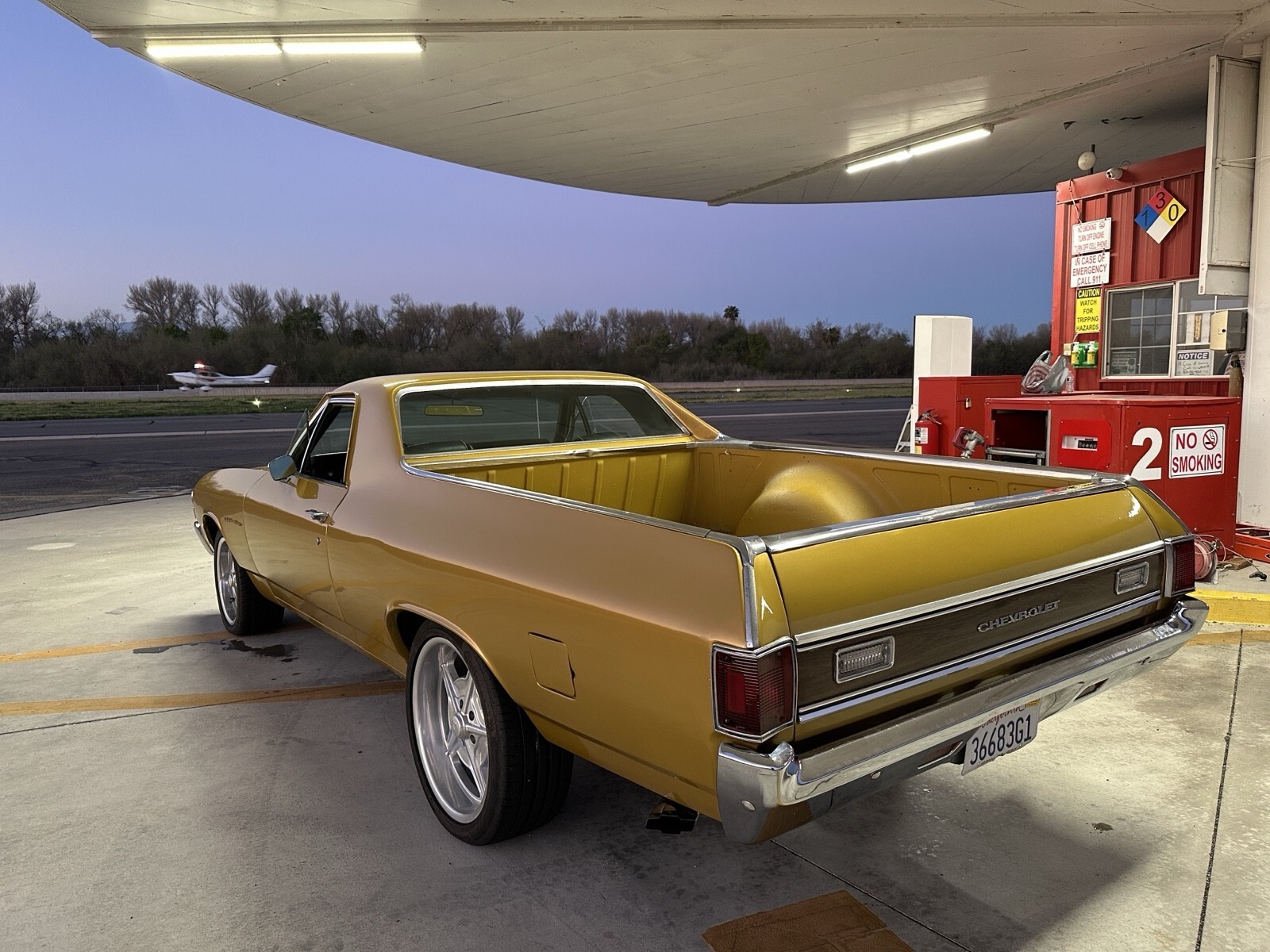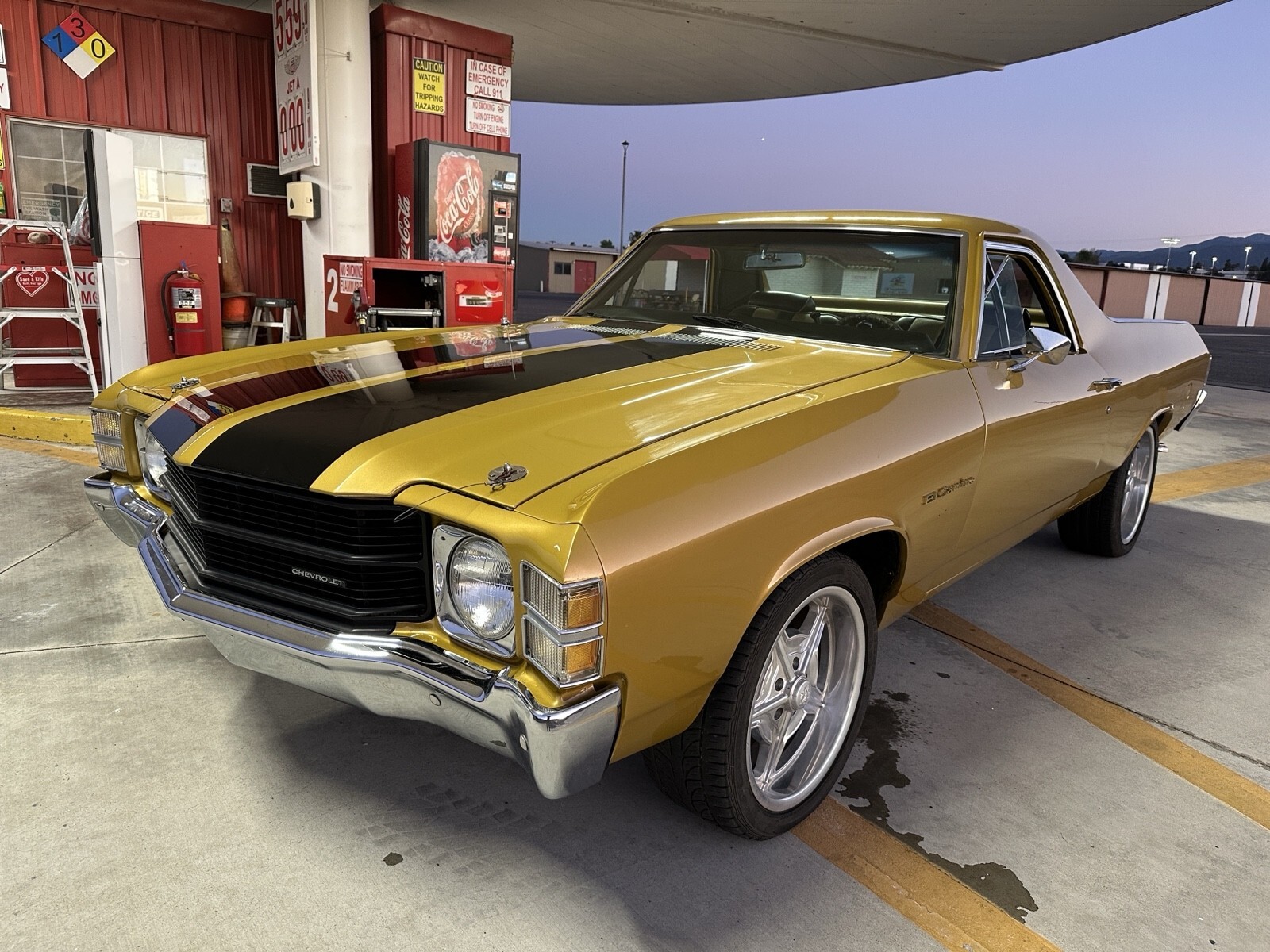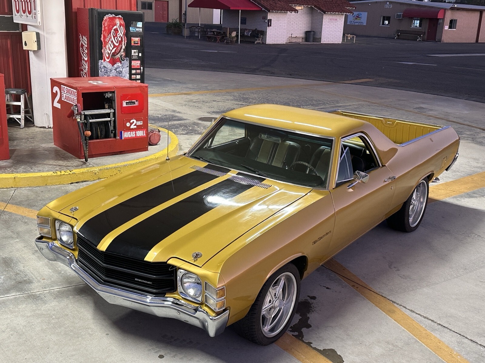 Chevy El Camino 1971 in great running and driving condition. Rust free Ca car. a V8 350 and auto 350 trans. Most of the interior is original not restored. All exterior lights work properly reverse lights tail. Lights etc. Gas gauge and speedometer aren’t working. Has a new temp gauge. CLEAN TITLE CA REG UP TO DATE V8 350 Auto 350 w/shift kit Power Steering Power brakes Edelbrock carb Msd ignition Daily driver condition ready to go!