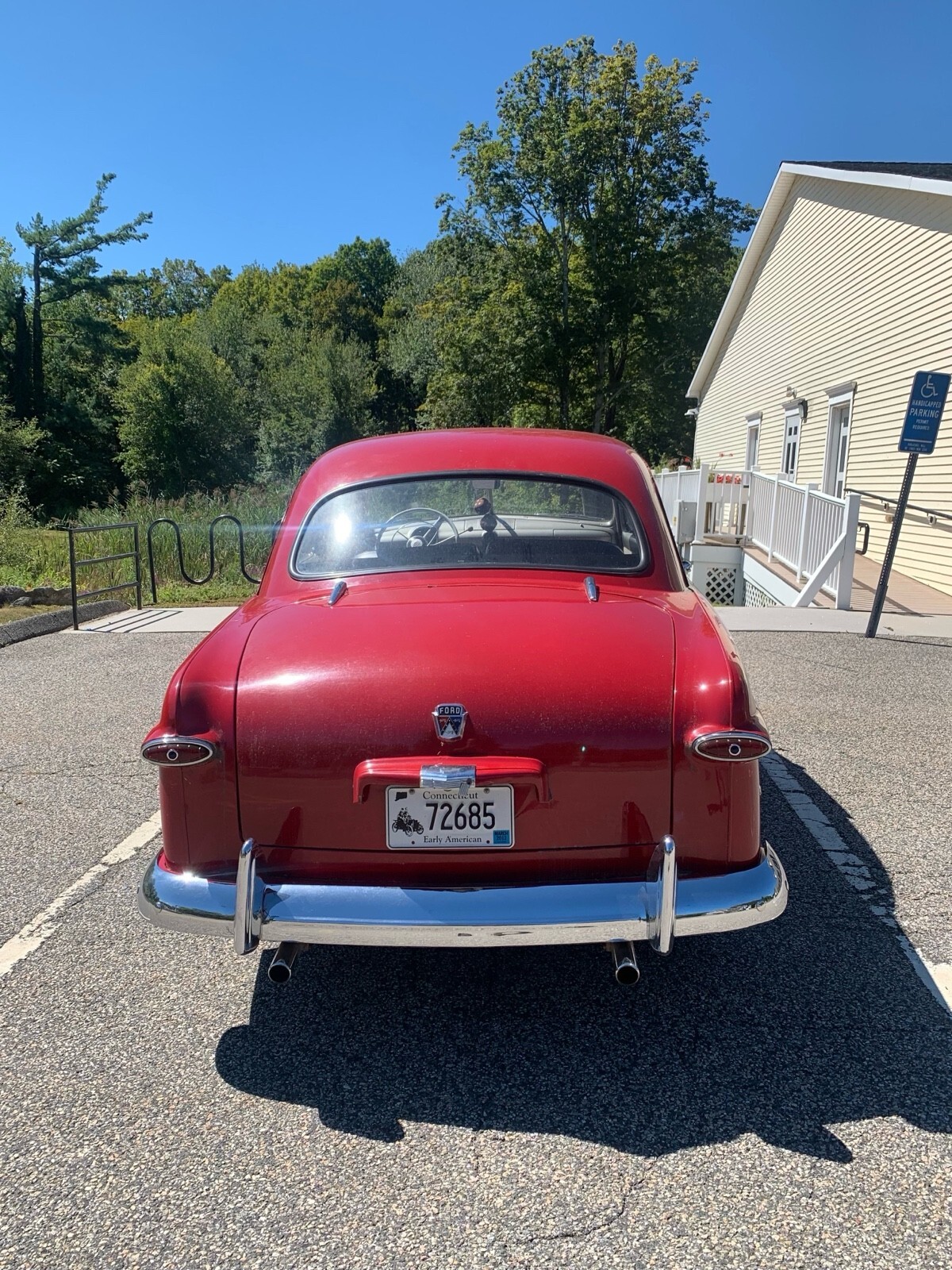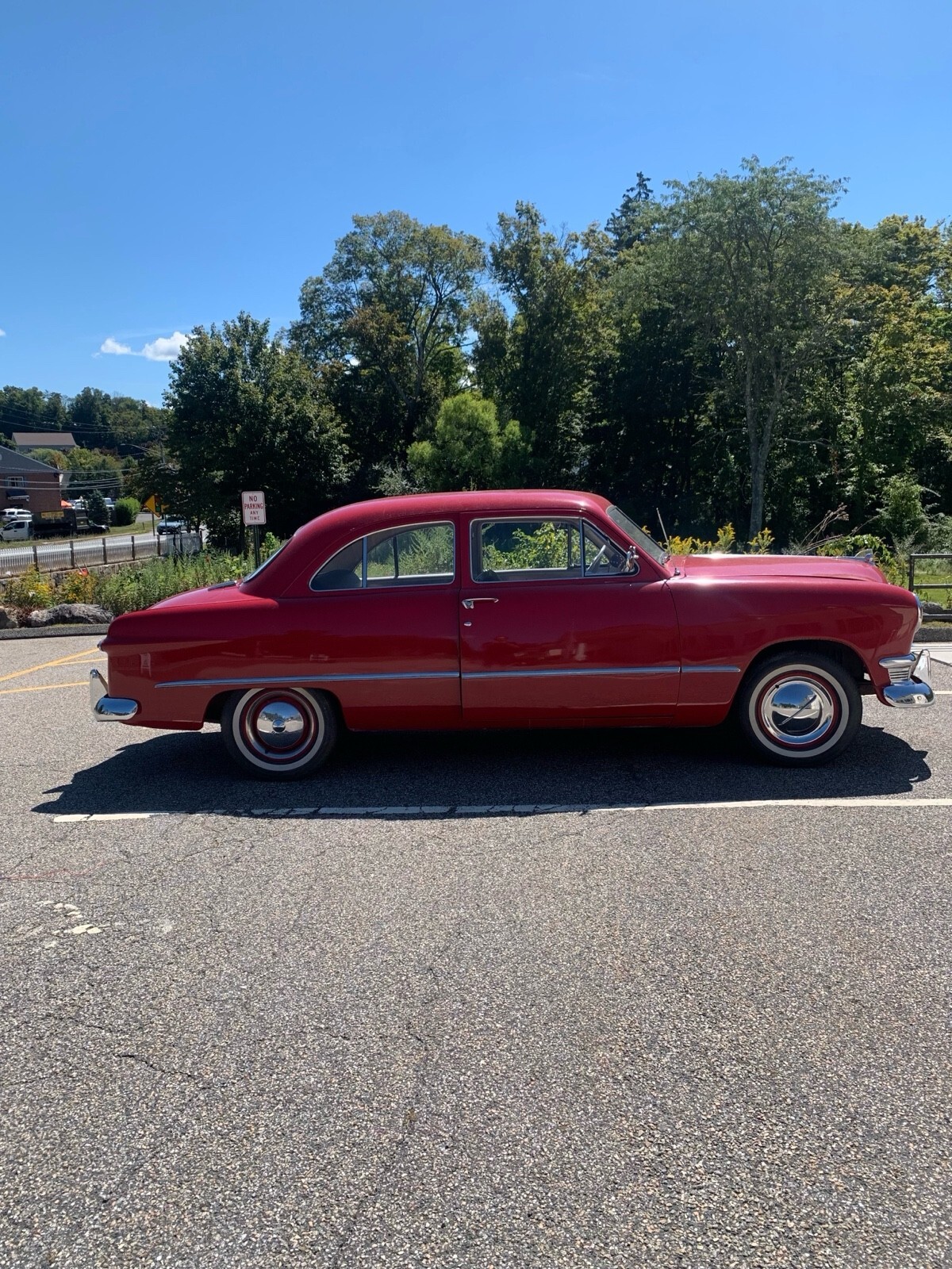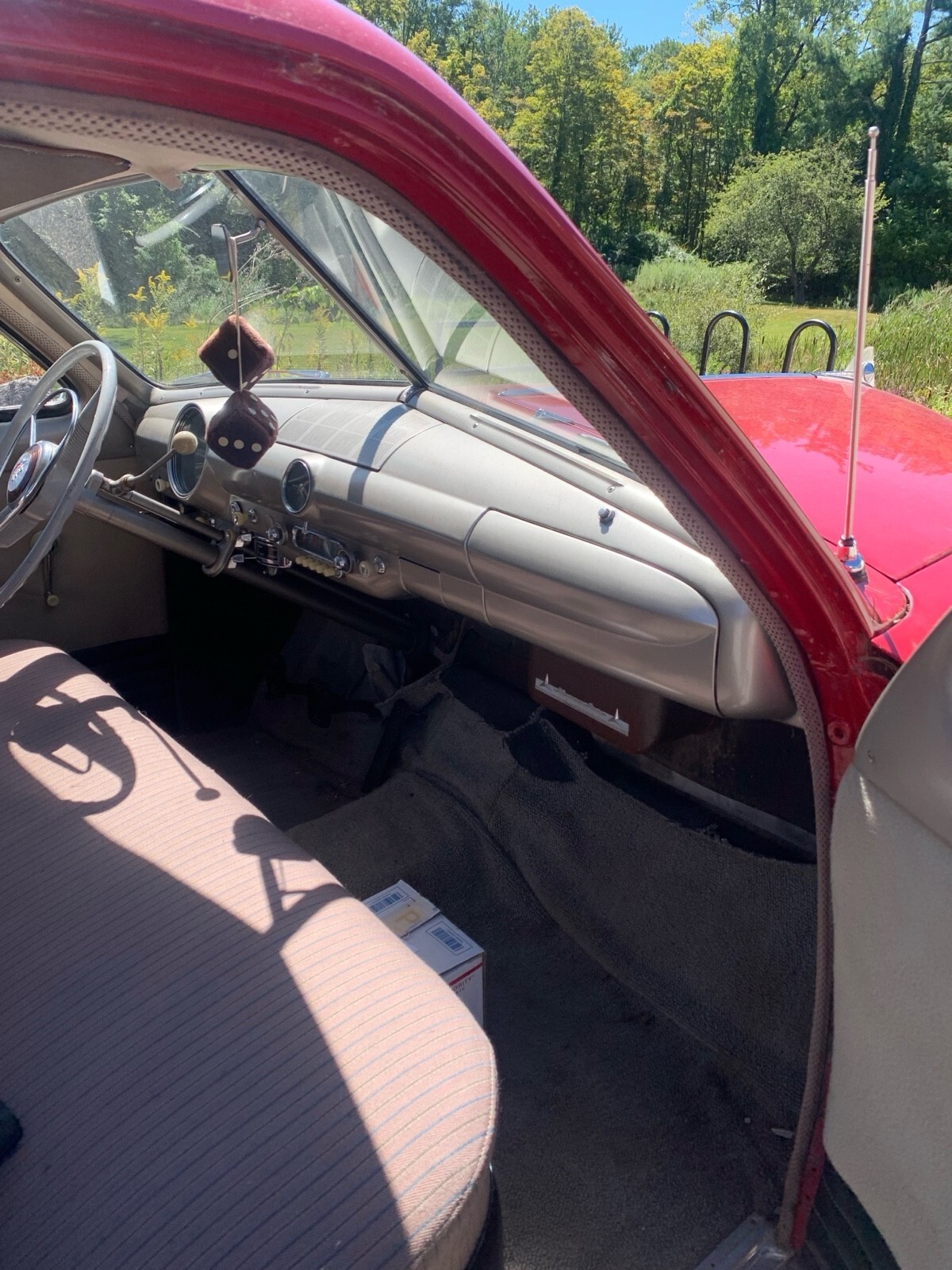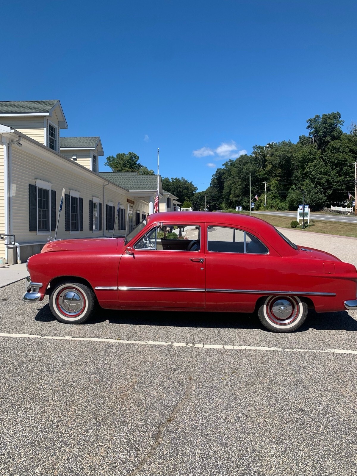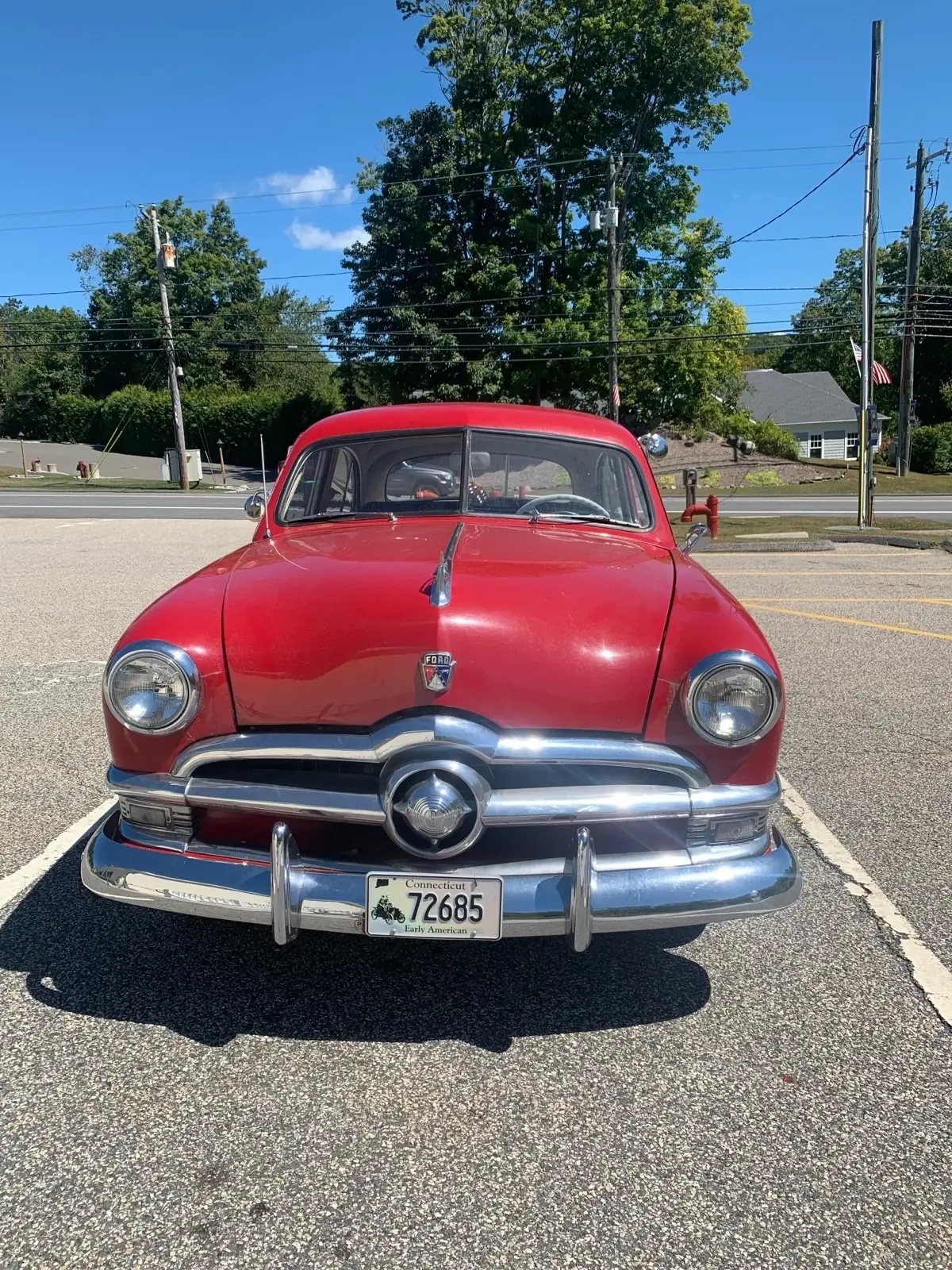 The 1950 Ford Custom is an original classic car that has been in the owner's possession for 2 years. This red vehicle, with only 51,587 miles on the odometer, is perfectly fine for weekend drives. Its clean title makes it a reliable and enjoyable choice for anyone looking to add a touch of nostalgia to their driving experience.