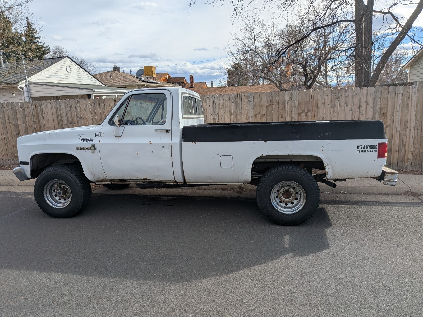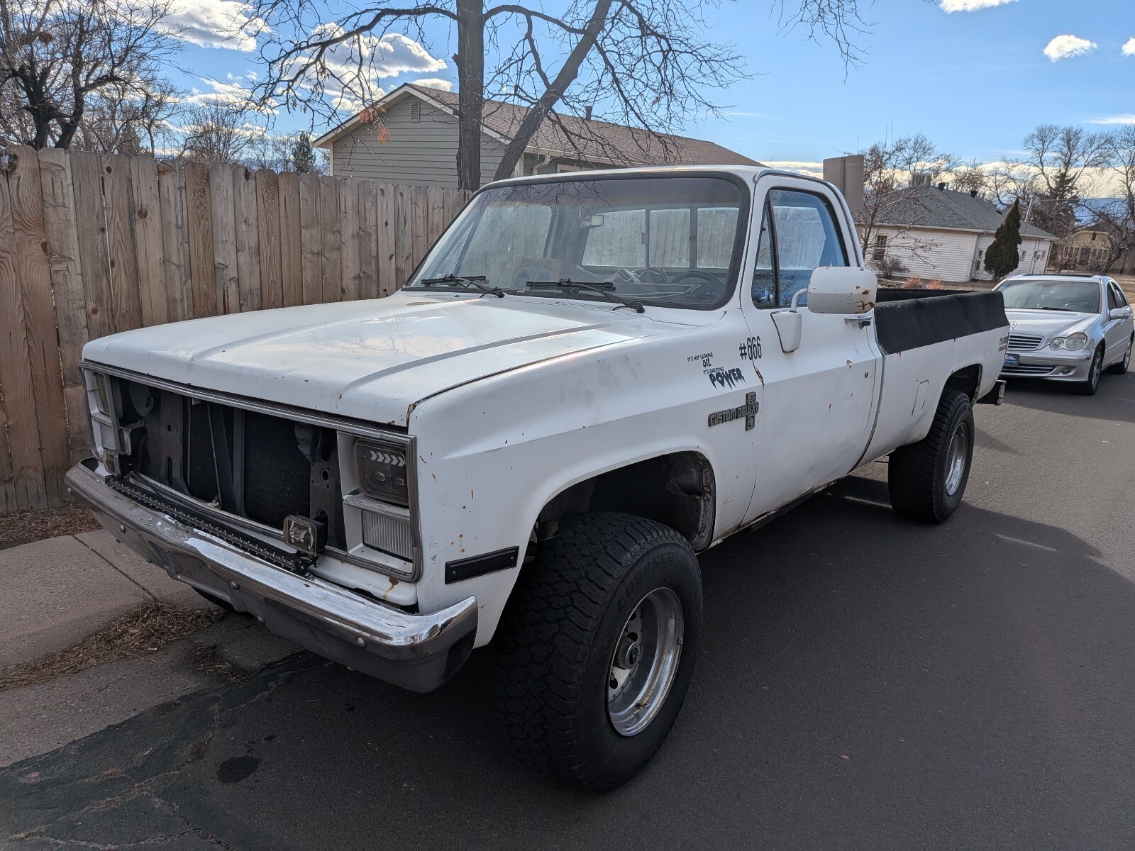 Hello, bought this truck a Chevy 1984 K20 with a Chevy 350 and 400 turbo tranny and the engine blew. Was going to turn this into a monster but decided to just let somebody else have a perfect vehicle minus an engine to restore and make a monster