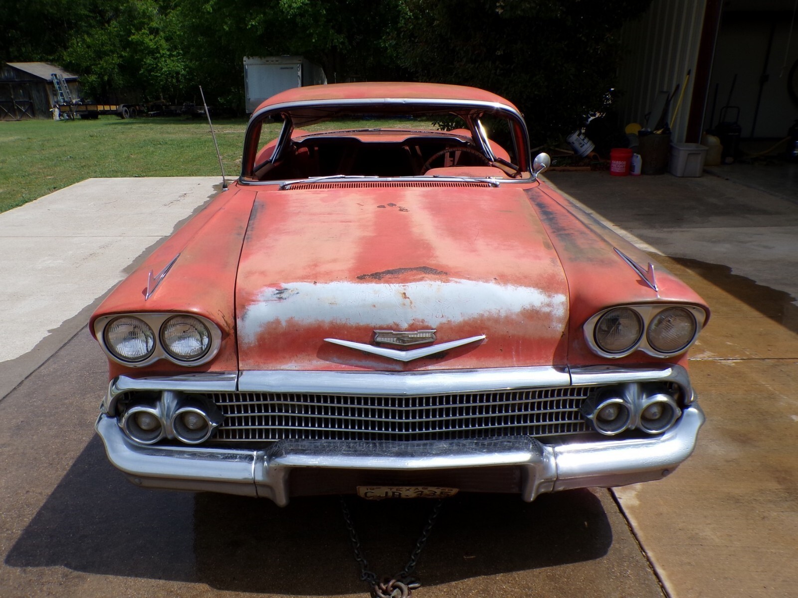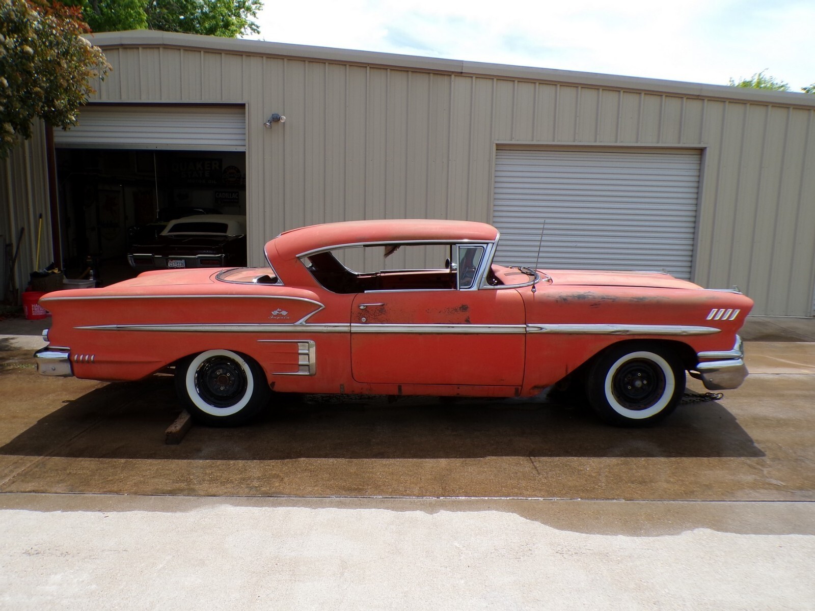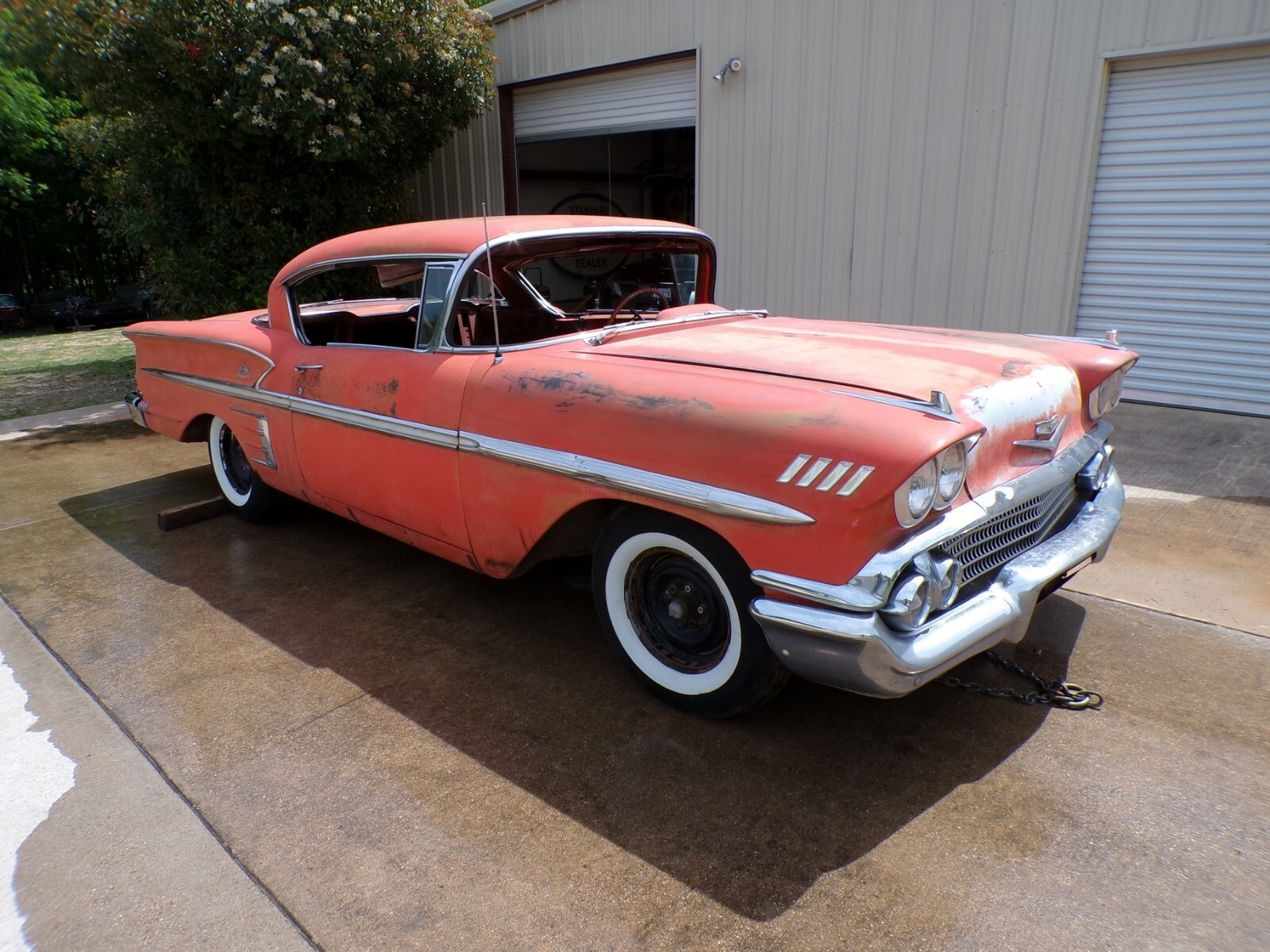 SEE 90 DETAILED PHOTOS ON MY WEBSITE WWW.PETESCLASSICCARS.COM NO TRADES. NO FINANCIN, NO CARAMEL /EBAY SECURE PAYMENTS. BEST WAY TO GET IN TOUCH IS BY A SIMPLE PHONE CALL.. NO LOW BALL OFFERS. PRICE IS FIRM. I SELL WORLDWIDE. CAR CAN BE EXPORTED FROM HOUSTON, TX. HERE IS THE DESCRIPTION 1958 CHEVROLET IMPALA SPORT COUPE- ONE OWNER CAR SOLD BY REEVE CHEVROLET ON 5/29, 1958 . HAVE THE ORIGINAL TITLE AND LICENSE RECEIPTS . LAST ON THE ROAD IN 1969. MOSTLY ORIGINAL PAINT. SHOWS 70,000 MILES. FACTORY ROMAN RED WITH GRAY, BLACK,RED INTERIOR, WAS PROBABLY A 283 CA, WAS A 3 SPEED MANUAL. SOMETIME BEFORE IT WAS PARKED, A OLDSMOBILE 324 V8 FROM THE 50'S AND AN AUTOMATIC TRANSMISSION WAS INSTALLED. NOT RUNNING. THE OUTER BODY IS SOLID. IT DOES HAVE A SHOTGUN BLAST IN THE DRIVER DOOR. THE FLOOR PANS ARE RUSTED OUT EXCEPT FOR DRIVER SIDE REAR. THE TRUNK PAN HAS SOME CRACKS . ALL THE GLASS EXCEPT FOR THE TINTED VENT WINDOWS WAS BROKEN YEARS AGO BY KIDS THE WINDOW FRAMES ARE GOOD. PARTS MISSING- HUBCAPS, ORIGINAL MOTOR/TRANS., FRONT SEAT TRACK, WINDSHIELD INSIDE MOLDINGS.,REAR SEAT SPEAKER GRILL, ONE ROCKER MOLDING. ORIGINAL TEXAS TITLE IN HAND SOLD AS IS. EBAY BUY IT NOW DEPOSIT NON REFUNDABLE. BALANCE OF PAYMENT IN 3 DAYS UNLESS OTHER ARRANGEMENTS MADE BEFORE HAND. BALANCE BY CASH IN PERSON OR BANK WIRE TRANSFER. VEHICLE AND TITLE RELEASED WHEN FUNDS CLEAR. GO TO MY WEBSITE WWW.PETESCLASSICCARS.COM FOR PHONE NUMBER AND MORE PHOTOS.