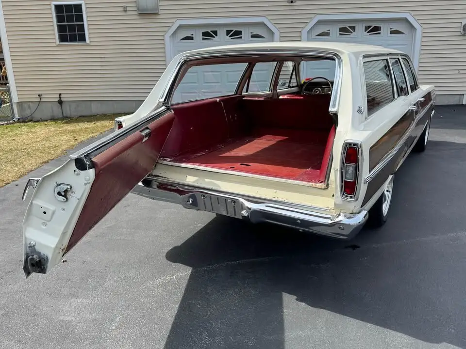 Not your grandma's 1967 Ford Fairlane station wagon! By no means perfect, but a rare vintage Ford wagon hopped up with a ton of goodies that make this car fun to drive, reliable and a head turner every where she goes. Features the Ford Magic tailgate with a functional power rear window! Over $23k invested into the car in parts alone, receipts and documentation for everything. Clean NH title. 289 motor, AOD transmission, manual steering, manual brakes - NOTE transmission currently does not shift into 3/4/Overdrive - Selling as is, too many other projects to troubleshoot. Engine - 289 was rebuilt at some point, runs smooth/strong/burns no oil/no leaks - Weiand Street Warrior aluminum intake - Electronic Ignition -> Pertronix Ignitor III ready to run distributor/coil - Holley Street Avenger 570 4 barrel carburetor with electric choke - 130 amp 3g alternator with PA performance wiring conversion - Modern High Torque Mini PMGR starter - Champion 3-core aluminum radiator - New HV water pump/thermostat/clutch fan/shroud, fuel pump, starter solenoid Transmission - Ford AOD out of a 1992 Mustang - see note above - Hurst Pro-matic 2 Ratchet Shifter - Lokar stainless kickdown cable - Derale transmission cooler with stainless braided lines Suspension - Opentracker Racing rollerized - Roller Spring perches - 600 lb. 1" drop springs - Racecar Dynamics/Bilstein Shocks - New upper/lower control arms - New heavy duty sway bar- New inner/outer tie rods - New strut rod bushings - Eaton Detroit leaf springs Brakes - Wilwood Dynalite Front Disc brakes - Wilwood master cylinder/adjustable proportioning valve - Explorer Rear disc brakes Rear End - Quick Performance - QP Ford 9" Yukon Nodular Iron 3rd Member with 3.25 gears, Eaton Truetrac, Aluminum Daytona pinion support, 1350 billet steel yoke - QP 31 spline axle shafts Exhaust - Hooker Competition long tube headers, Ceramic coated by JetCoat - Magnaflow 2.5" stainless steel dual exhaust Interior/Exterior - Autometer 2399 gauges (Oil pressure/voltage/water temp) - Mustang Project LED headlights/high beams - All exterior/interior lighting converted to LED