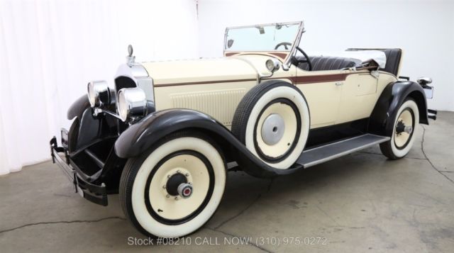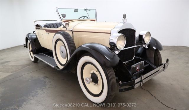 1927 Packard 426 Roadster 1927 Packard 426 Roadster in creme with black fenders and brown trim with black interior. Comes equipped with an inline 6 cylinder with a manual transmission, steel disc wheels with white wall tires, luggage rack, rear rumble seat and includes the boot. Very clean and presentable and an excellent addition to any collection. For $49,500 If you have any additional questions Please call 310-975-0272 or email with any questions! We also welcome all international buyers. We can help with shipping quotes and arrangements.