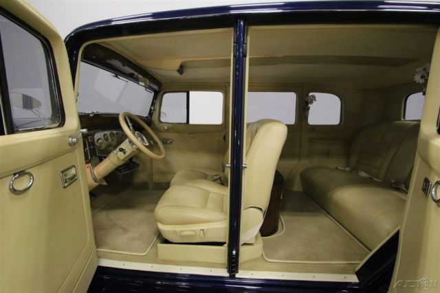 Arrive in style. This is a very well-built car that will draw the attention of a crowd as well as the attention of the judges at a car show. It will also just flat out steal the show when you pull up to a theatre opening or fancy restaurant in it. It's got killer style, its comfortable, its fast, and it sounds good. When you see this car, and check out how it's been customized, you might wonder why there aren't more cars done like this, or you may wonder why you didn't think of doing it first. Start with the stunningly good looks of a 1930s classic like a Packard, then strip it down and respray it with a first class, show quality paint job, but do it without having to worry about originality. A custom chrome grill leads the way up front with a swan perched on the top. Freshen up the chrome on those four awesome headlights as well as the bumpers, horns, and trim, and then cut new side mirrors and windshield wipers out of billet. Out back, the bumper and taillights are complimented by the chrome bands on an actual trunk. Highlight the fender wells and running boards as well as the upper body line with nice tan pinstriping, then set it all on wire wheels with gangster white walls with a spare mounted on each side and you have one awesome looking ride. When you open the door of this car, get ready to be blown away by the custom interior. Just for fun, go ahead and open both of them to get the full effect of the suicide doors. Up front a power seat trimmed in leather sits in front of a billet steering wheel wrapped in leather. It is mounted on a column with tilt, cruise, and the shifter for the automatic transmission. Beautiful burled wood stretches from side to side with separate glove boxes for the driver and passenger. VDO gauges are trimmed in gold and mounted in a panel with a coat of arms in the center. Below it are the power window switches and controls for the Vintage Air system and there is a Pioneer sound system that is AM/FM/CD and iPod compatible mounted in a custom overhead console. While the Chauffeur has a first-class office to operate in, the back-seat passengers get a custom bar with cup holders and a jar of Grey Poupon, just in case anybody pulls up next to you and asks. There is certainly plenty of room to stretch out back there and flower vases add to the ambiance. With all that custom work on the outside and the inside, you just know that the engine and drivetrain are going to be custom too. And it is. A 454 V8 has been dropped in and dressed up for the show with Packard cut into those big polished aluminum valve covers in script. A FITech throttle body injector fed by braided fuel lines sits on top of an Edelbrock Performer intake manifold. New plugs, wires, and cap get the mixture lit and polished long tube headers get the spent gasses out and headed back to Flowmaster mufflers. This has got to be the best sounding Packard ever! Power flows back through a 4-speed automatic transmission with overdrive to a custom rear end. It is a Ford 9" located by trailing arms and a panhard rod with coil springs and disc brakes. Up front, control arms work through torsion bars with a sway bar to help this car handle surprisingly well. Power steering is handy in the parking lots and ventilated disc brakes will stop this big car in a hurry. Killer style. Custom from top to bottom and end to end. A show stopper, and a show winner. Come on down and check it out. It's a pretty awesome ride.