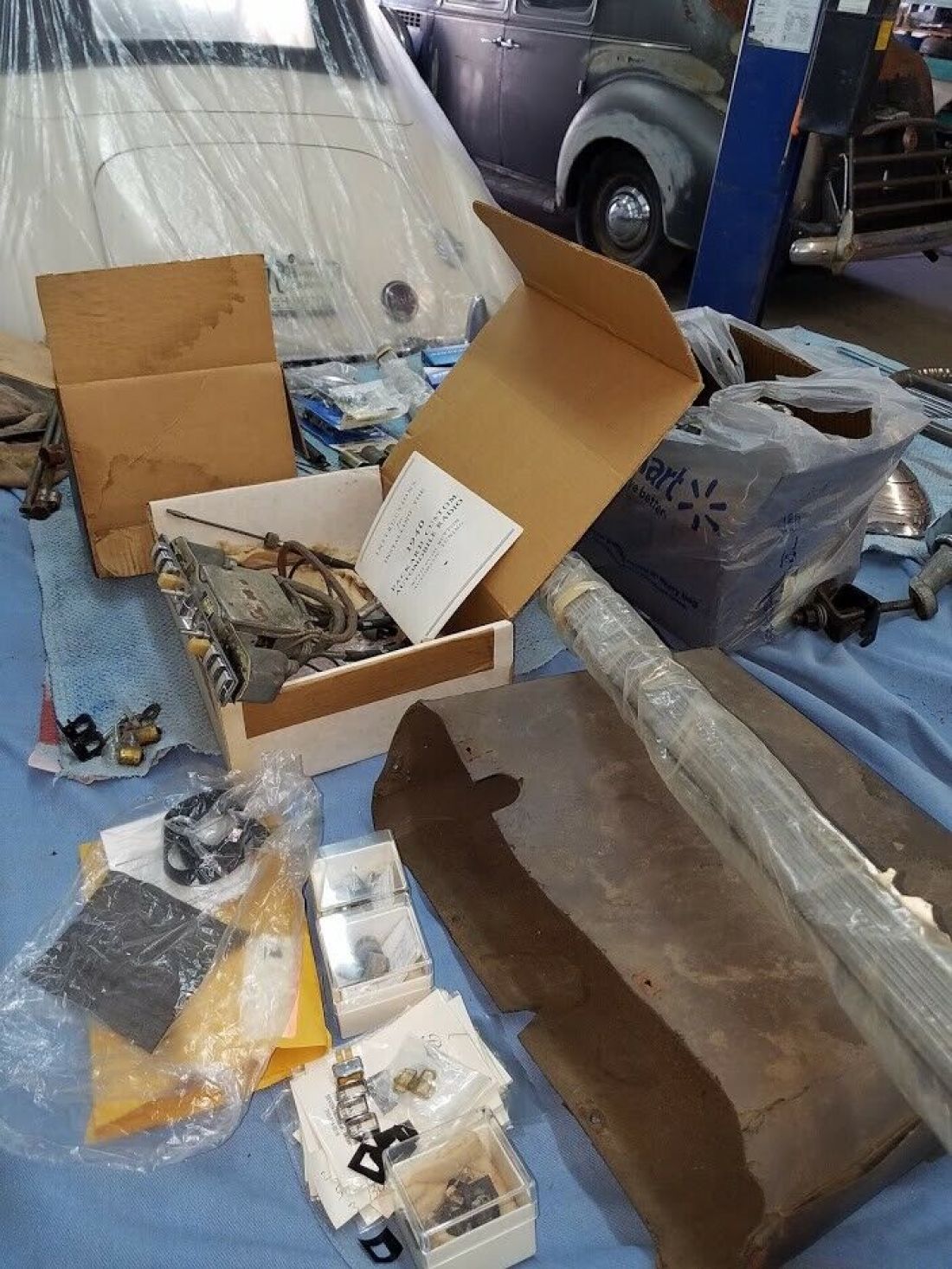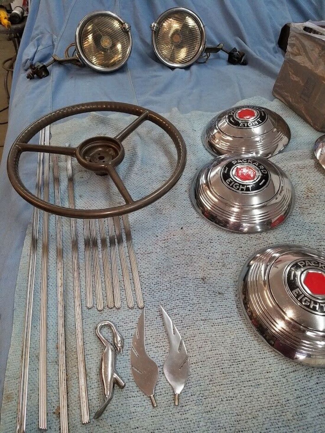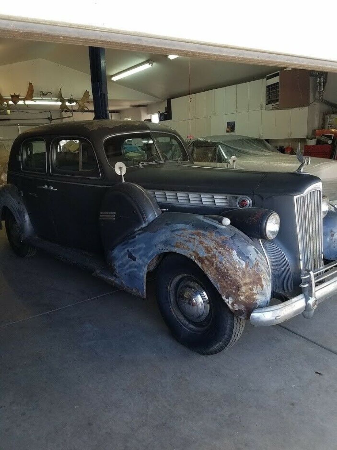 1940 Packard 180 Club Sedan, Dual Sidemounts, Super Eight Engine, Runs and Drives(no foot brakes), Luggage rack, Rebuilt radio, Sidemount mirrors, Many extra parts including Beautiful set of Sidemount front fenders(should be worth $5,000 alone), Trippe lights, Interior and trunk upholstery in good fair shape, wool carpet in back seat. Some rust in rear fenders and body area, and front fenders on car. Sold in as is condition. Buyer responsible for shipping cost. Clean Title. Dennis 775 315 8265