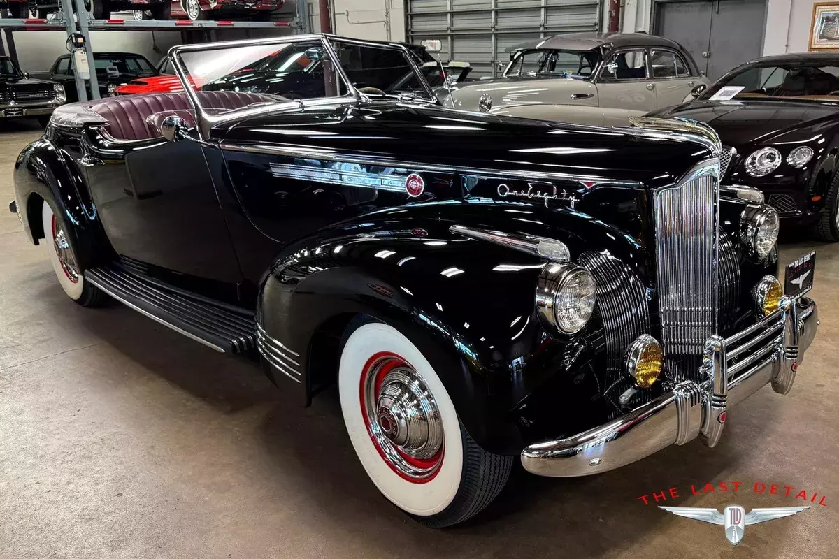 RARE CLASSIC ERA DESIGN MASTERPIECEBODY BY FAMED DESIGNER HOWARD "DUTCH" DARRINFINISHED IN BLACK W/ OXBLOOD LEATHER INTERIORCAR 9 OF 35 CONVERTIBLE VICTORIAS BUILT FOR 1941356 CI L-HEAD INLINE 8-CYLINDER ENGINE3-SPEED SYNCHROMESH MANUAL TRANSMISSIONONE OF THE MOST GLAMOROUS PREWAR COACHBUILT CARSCCCA FULL CLASSIC RECOGNITIONFRESHLY & FULLY INSPECTED, SERVICED & DETAILED Soon after returning to America from France in 1937 and logically settling in Hollywood, renowned designer Howard "Dutch" Darrin created a sensation with his automobile designs for the rich and famous of the era. Starting with a European-themed 1937 Ford Phaeton for Warner Brothers' actor Dick Powell and a similar design on a Packard 120 chassis for RKO actor Chester Morris, Darrin continued with several more cars as he established himself in Hollywood. Approximately 22 custom Darrins followed in 1938 and 1939 for stars including Errol Flynn, Gene Krupa, Al Jolson, and Carole Lombard for Clark Gable. For 1940, 30 cars were produced in all by Darrin, mostly two-door convertibles featuring Victoria-style convertible tops and the rakish "Darrin Dip" to the doors and bodysides. By mid-1940, Darrin's custom work on Packard chassis caught the attention of Packard president Alvan Macauley via dealer Earle C. Anthony. A deal was struck for Packard to market the cars as part of its model line, and a factory was established in Connersville, Indiana to build them in 1941 and 1942 just before the halt of civilian automobile production when America entered WW II. Finished in Black paint with an Oxblood leather interior, this 1941 Packard Custom Super Eight 180 Convertible Victoria is a rare and wonderfully presented example of the celebrated Darrin and Packard collaboration. Car No. 9 of 35 Convertible Victorias built for the 1941 model year, this Packard-Darrin is one of only 3 known equipped with running boards. Additionally, it features a "K" multi-spoke steering wheel. Sold new on May 27, 1941, by Ed Lee Packard in Pensacola, Florida, this example is believed to have been restored by Gray Hills Auto Restoration in New Jersey and recently refreshed by Robert Escalante's Custom Auto Service in Santa Ana, California, where it received a new top, plus new carpeting, a new wiring harness and restored brightwork. A shop manual and service records are included. Well-known in classic Packard circles, this example is a proven concours contender that has received two invitations to the world-famous Pebble Beach Concours d'Elegance, plus awards at numerous shows in the West.Recognized as a CCCA Full Classic automobile with exceptional eligibility for a wide array of shows, concours, and classic touring events, this exceedingly rare and handsome 1941 Packard Super 8 180 Convertible Victoria by Darrin is an outstanding and timeless prewar classic automobile throughout. Call us today for more details, book a viewing, and make it yours in time for the upcoming show and touring season!