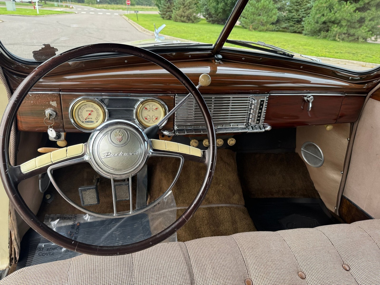 1948 Packard Deluxe Sedan. This is a great running and driving car the has a 288 straight eight engine and a 3 speed manual transmission. Starts right up with the aftermarket push button starter. The paint is nice, but you can see some small flaws. Very clean interior. The headlamps work, wipers work. Radio, blower are inop. Very nice aftermarket gauges were installed. Miles are shown at 3,665 and are more than likely not actual on it. Very fun car to hop in and cruise the town in or take to local shows. Clean title. Hurry, at this price it will not last long.