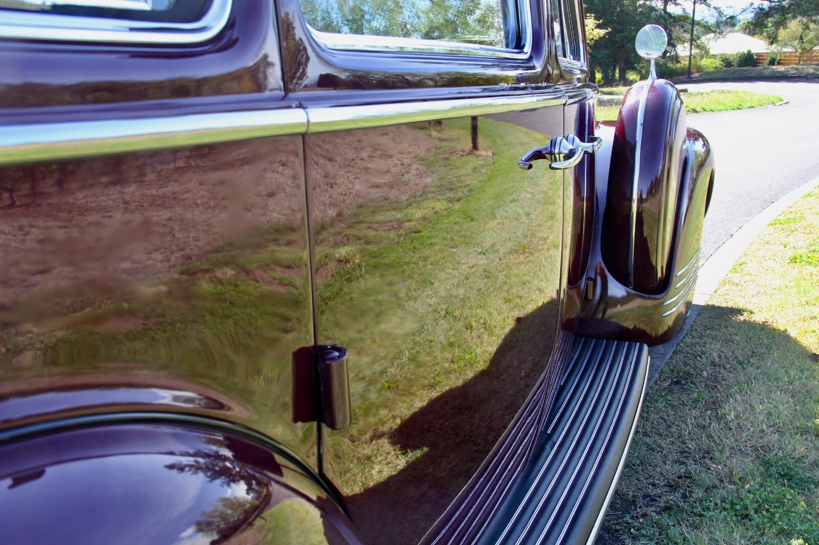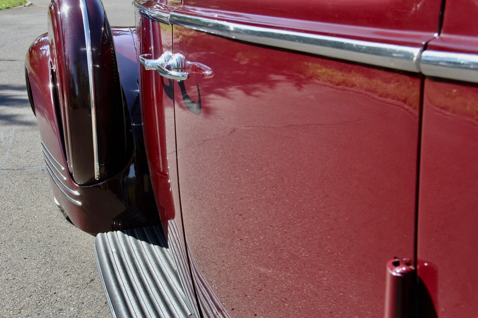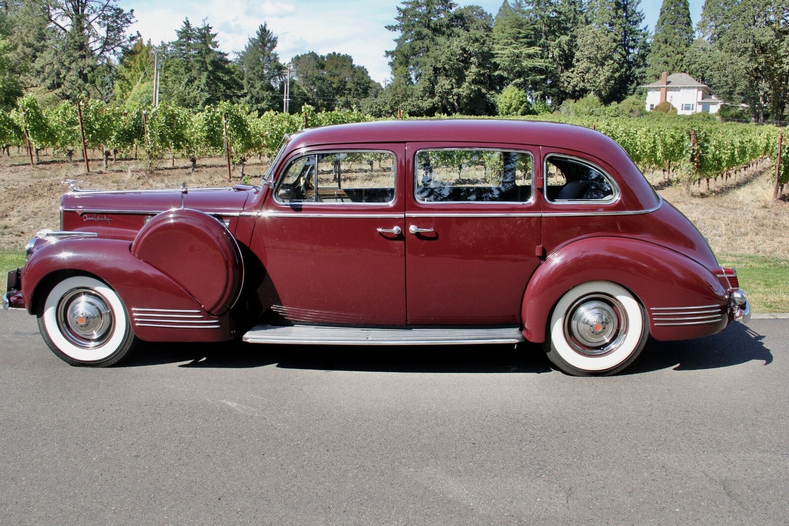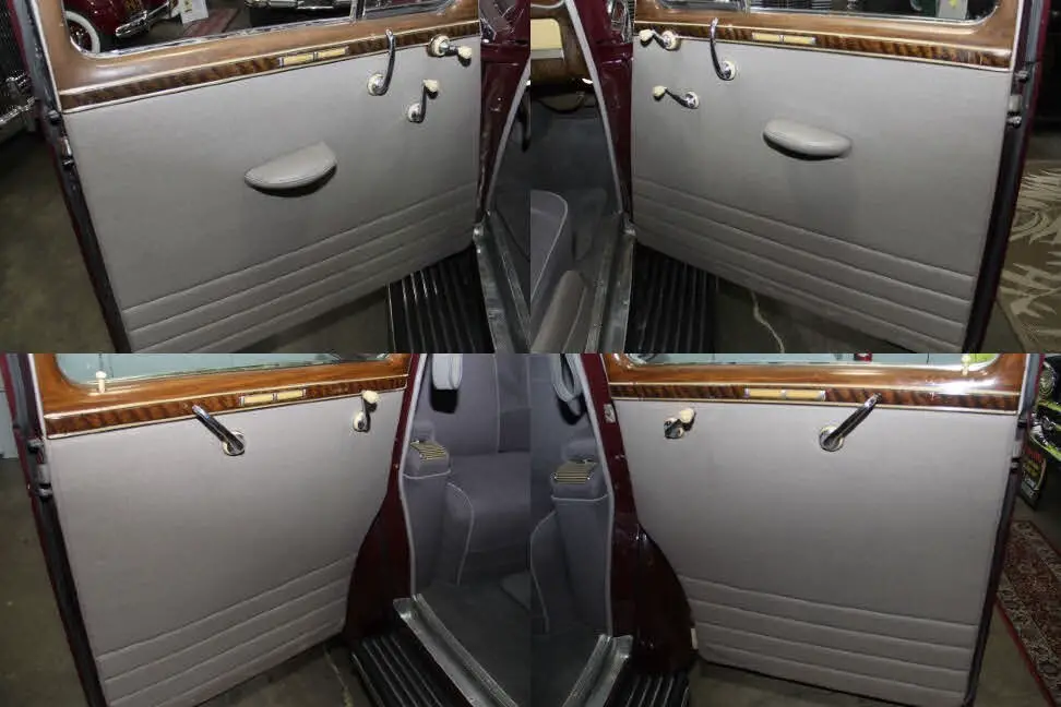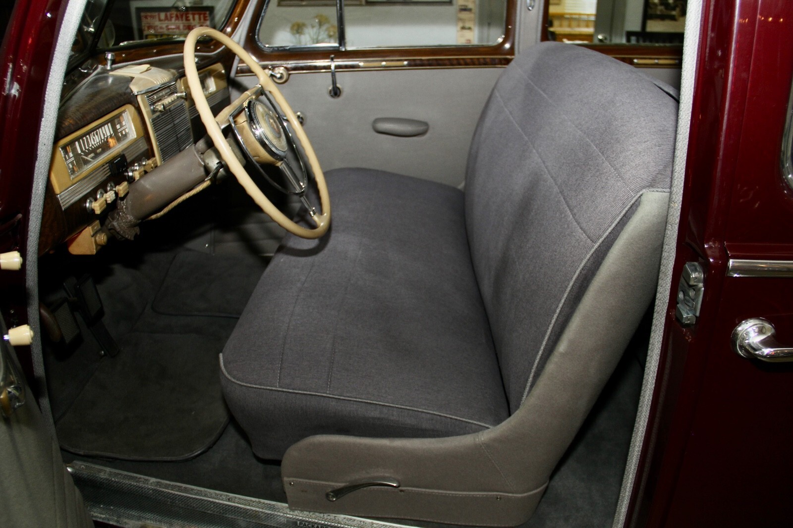 The 1941 Super 8 160 featured Packard’s 356 cubic inch, 160 horsepower straight 8 engine, with 9 main bearings and hydraulic valve lifters for smooth power at all speeds. Nicknamed “The soft-spoken boss of the road,” it was more powerful than Cadillac’s 150 horsepower V8. The 160’s were among the last “Senior” Packards to feature running boards and dual side-mounted spare tires, keeping the classic styling that would be gone after WWII. This car is a model 1904, on the longer 138-inch wheelbase, affording back seat passengers extra room and comfort. Finished in Packard “Laguna Maroon” the body, paint and chrome trim are in excellent condition, testament to its pampered, low-mileage life. This Packard has appeared in two major motion pictures:“The Good Shepherd” (2006) with Robert DeNiro and Matt Damon.“My One and Only” (2009) with Kevin Bacon and Renée Zellwegger.