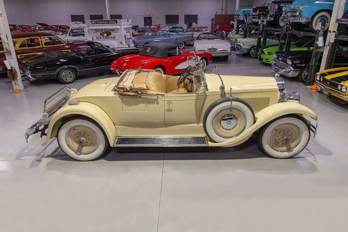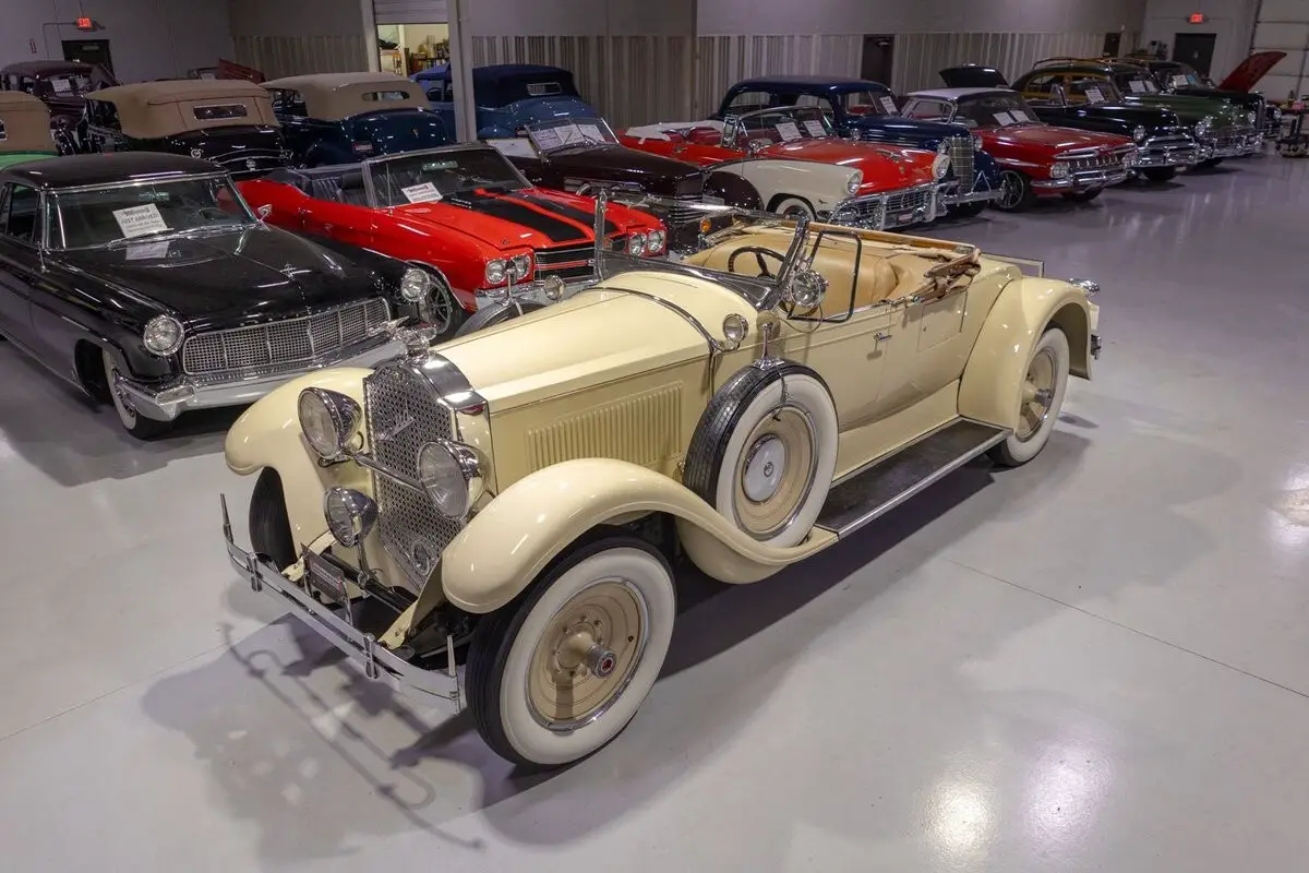 This 1929 Packard 626 Eight Runabout is a wonderful pre-war luxury automobile that has a striking presence and that has been deemed a Full Classic by the Classic Car Club of America qualifying it and its next owner for CCCA events and CARavans. While Packard officially introduced its Sixth Series cars for 1929 on August 1, 1928, America's automobile manufacturing industry kicked off the 1929 model year at the National Automobile Show on January 5, 1929, in New York City. Packard hosted guests during the Auto Show at the Roosevelt Hotel. Packard's event was well-attended and its new cars were well-received. Packard's Sixth Series cars sported numerous updates that helped modernize Packard's lineup. Perhaps the most notable upgrade occurred to Packard's lineup wide drivetrain which saw Packard's Straight 8 engine being used exclusively across all of its cars, losing the Six cylinder engine. Another significant update in 1929 was that Packard opted to utilize chrome plating, rather than nickel plating, for its brightwork leading to a more robust, longer lasting end product with an even more spectacular look. With an impressive vehicle lineup, things were looking particularly good for Packard for the first 2 or 3 financial quarters of 1929. Sales were strong and Packard Motor Car Company stock was performing so well that Packard issued a five to one split. However, by October 1929 all of that optimism washed away when the stock market crashed ushering in the worst financial crisis in American history, the Great Depression. Although Packard's sales had slipped a bit in '29 from its peak in 1928, its footing atop America's luxury automobile hierarchy remained strong with some numbers showing that approximately half of the formal cars sold in 1929 had a Packard emblem on them. Clearly, Americans shopping at the high-end of the luxury car market knew that Packards were the best of the best, and that remains true even today, just "Ask the Man Who Owns One!" This particular 1929 Packard Eight Runabout comes to us from a long-term enthusiast owner who is believed to have stewarded the car for over 40 years after purchasing the car from a southern-based collector. Providing power to this '29 Packard is a 319.2 cubic inch L-Head Straight 8 engine fed by a single 2 barrel carburetor that together were said to have created 90 horsepower when new. The 319.2 Inline 8 is mated to a 3 speed manual transmission that is shifted using a floor mounted shifter. The chrome trimmed radiator shell is topped with the iconic "Flying Goddess of Speed" hood ornament and the radiator is further protected with a Packard-trimmed rock guard. This 1929 Packard Runabout is also adorned with several lighting elements in addition to the new for 1929 parabolic headlights including a center-mounted driving light as well as a pair of chrome cowl lights and a driver's side auxiliary spotlight. This '29 Packard is further optioned with dual side-mounted wide whitewall spare tires, each topped with a Packard "See-Rite" chrome outside mirror to help with tricky parking situations and to further supplement touring efforts. In the rear of this Packard Eight is a foldable luggage rack should you take this beauty for an overnight CARavan or cruise. Mounted above the rear license plate bracket is single brake light assembly as was typical in this pre-war time period. A side-opening golf club door is another period correct feature on this Packard 8 Runabout and perhaps useful when taking this Packard to the golf course. The beige canvas top is accented with chocolate brown fabric trim and while showing some age, is still operational, free of major rips or tears, and it is manually raised and lowered. Riding on a set of wide whitewall bias-ply tires mounted on painted Disc Wheels, this pre-war Packard has a truly upscale look. The steel body on this 1929 Runabout Packard has been refinished in beautiful Old Ivory paint accented with tasteful red pinstripes, completing the exterior look of this CCCA Full Classic. The interior of this 1929 Packard Eight Runabout exemplifies pre-war beauty! The front bench seat and rear rumble seat have been re-covered in beautiful Buckskin colored upholstery. The burl woodgrain-trimmed dash, matching upholstered door panels, carpeting and patterned floor plate, and black 4-spoke steering wheel are all in wonderful shape and all retain a nice stock appearance as well. This '29 Packard Eight comes equipped with full instrumentation including a 100 MPH speedometer, amp gauge, temperature gauge, oil pressure gauge, and fuel gauge, along with a Waltham clock. Whether you're adding to your existing collection of Packards or you're buying your very first classic car, this 1929 Packard 626 Eight Runabout would make an excellent choice. Give Ellingson's a call today at 763-428-7337!