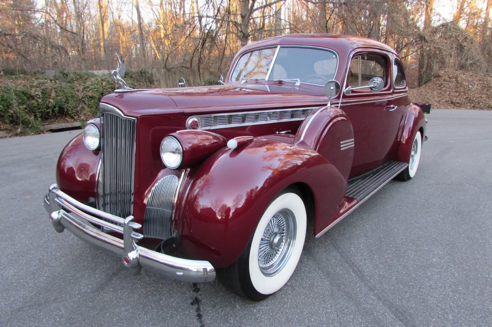 1940 Packard 160 Super 8 Business Coupe restomod/hot rod. This classic offers both elegance and attitude with it's ornate exterior and performance modifications. It has been thoroughly reimagined with a dark red exterior, tan interior with bucket seats, updated suspension, V8 engine, automatic transmission, power disc brakes, power steering, air conditioning and more. Power comes from a built 350 with a Holley carburetor mated to a GM 700R4 with a positraction 12 bolt Chevrolet differential. It's a big car, but this drivetrain moves it with ease and sounds as strong as it is. From what we've been told, the majority of the work was done in 2017-2018. The car has been driven 733 miles according to the new gauges. Our service in preparation for sale included an oil change, carburetor rebuild, brake fluid flush, new front brake calipers, spark plugs, spark plug wires, drive belt, radiator cap, fuel tank and sender. Most of this was just due to sitting in the garage unused in recent years.For folks wanting an original car, this isn't the one. For those who something different with a lot of presence and plenty of power, here it is!