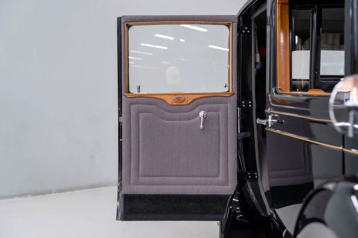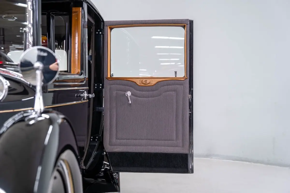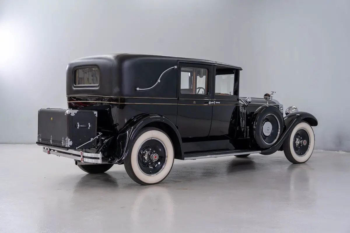 This elegant 1929 Packard Model 640 Limousine is virtually better-than-new and runs down the road gracefully. The meticulous restoration, said to be frame-off, left nothing to chance and is stunning. The vintage limousine body was beautifully refinished in Packard Black. All chrome and stainless, including the 'Flying Goddess of Speed' radiator ornament, is outstanding. Exterior accents include full running boards, dual fender-mounted spare tires, chrome mirrors and meticulous pin stripping. A pair of adjustable spotlights are mounted on the front cowl and factory 20" steel wheels with trim rings are fitted with period-correct whitewall bias-ply tires. There is a handsome padded vinyl roof with landau bars and a rear-mounted carrier with classic luggage trunk. The interior has been restored to a like-original appearance. The front seat is black leather, and the rear passenger compartment is correctly upholstered in wool broadcloth. A handsome walnut dashboard is fitted with original gauges and the curved glass 'privacy divider' window with roll-up center glass functions flawlessly. There is also an 'intercom' system between the driver/passenger compartment with microphone and speaker. The entire interior of this classic Packard is simply extraordinary.