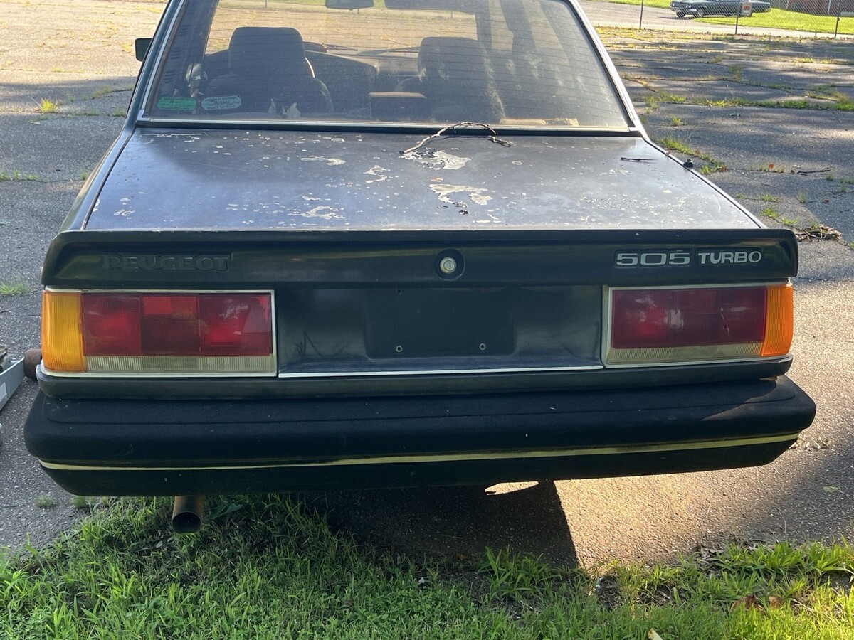 1987 Peugeot 505 Turbo overall a good solid car. I was told car was running and driving when parked. I see no major signs of rust or damage. Not running or driving. The car would make a great car for restoration. Stored inside a dry garage for 10+ years. 129,633 original miles. Clear NC title. Located in Hickory, NC sold with no reserve. Contact for questions. 828.465.0432