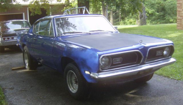 1969 Barracuda 340 S has been a race car for years. Body is very solid, Hood is in primer balance is viper blue.Nice roll bar, 1967 Dana 60 with 4.10 gears, the trunk metal was replaced with sheet metal and a fuel cell but the wheel tubs are still stock. New rear quarter panel lowers installed years ago. I have a set of 10" wide rear Center lines and 4" wide front Center lines that came on the car (but the tires won't hold air) take you pick. Also have a set of used TTI headers for a 440 that could be purchased separately for the car. Comes with two race seats that will need mounting brackets. Car still has the original rear seat and a new head liner that needs installed. I have many 440 parts fromcompletemotors to short blocks just let me know what you are looking for. Car is for sale locally andcould be pulled from auction if sold. Buyer is responsible for arranging and shipping and must put 500.00 down through paypal upon winning the auction and the balance is due with in a 7 days unless other arrangements are reached with me.