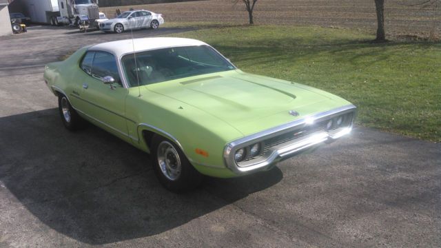 ok heres a super clean satellite for you guys absolutely no rust car from south carolina all its life 2 owner car original jack and wheel wrench single exhaust everything works like it should fasten seat belt lite and buzzer included pump the throttle twice and hit the key starts instantly the ralley wheels are not correct but im in the process of get the rite ones so it will have the correct ralley wheels when purchased i bought the car with the intentions of cloning it to a road runner but i cant bring myself to do it it just to nice these survivor cars are bring big money untouched so here it is the car has had some paint work done quite awhile ago its thin in spots but for the most part untouched no damage to the body any where but there are some small dings and scratches the car has all new bushings in the front end and could use an alignment it has manual brakes at the moment but the 2nd owner removed the booster and made them manual he did keep the original booster and it comes with the car he also installed a factory ralley dash with tack everything works in it i have an original dash that can be traded if you are not interested in the ralley dash has original carpet and seats the dash pad needs covered but the entire rest of the interior is very clean and original the door panels are not chaulky or brittle the carpet has great color as do the seats i believe the spare tire is correct and original this is the first survivor quality car ive owned so im not sure i did notice the engine displacement decal behind the fender tag is incorrect as it list the engine as being a 440 instead of a 318 also the radiator support decal appears to have been changed it appears that the hood insulation is original as is the trunk mat which both are in very good condition with no tears the upper and lower grilles are perfect the doors close effortlessly and windows wind up and down with no issues and original am/fm radio that works perfectly. really really nice clean original plymouth my number if you have any questions or need more pictures by text is 724 944 5646 i encourage everyone interested to come see the car but my credibility is impeccable check my rating so if you cant make it here you can buy knowing your not getting something that wasnt described accurately thanks for looking [ please i forgot to mention it was told to me when i bought the car that it has about 72k miles on it NOT the 28 that is on the rally dash speedo] i also have the build sheet the original radiator antifreeze tag and factory starting procedure tag the orginal owners manual and emissions controls manual in its factory plastic case along with factory plymouth satellite sales brochure dated 8-1-71