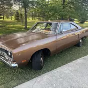 Citron mist Was the rarest color in the 70s the car is a 100 percent matching numbers it packs a big block 383 with a four-speed and it’s fully documented this car has an import badge Chrysler military classic car sales corporation Restored to perfect condition