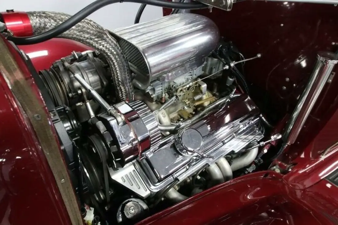 This is the one to drive when you want attention on the custom car scene. Most 1930s street machines start with a Ford body, and so this '33 Plymouth PC already starts off as an attention-grabber. The Medium Red Pearl paint is borrowed from a Toyota Camry. That just seems like such a cool reference. It's like this Plymouth needed to borrow the deep clearcoat finish just so it could show the ultimate family sedan what real curves look like in a glossy maroon. The lowered profile and fenders with running boards deliver that terrific swoopy styling. Plus, there's just the right amount of brightwork on the bumpers, headlight surrounds, door handles, and tall waterfall grille. Those Cragar wheels are already attention-getters, even before you notice the classic whitewall tires or the aggressive stance. It's the kind of total package that you can tell by the fit, finish, and details that someone took the time for a quality build.