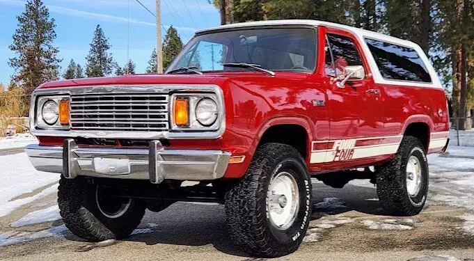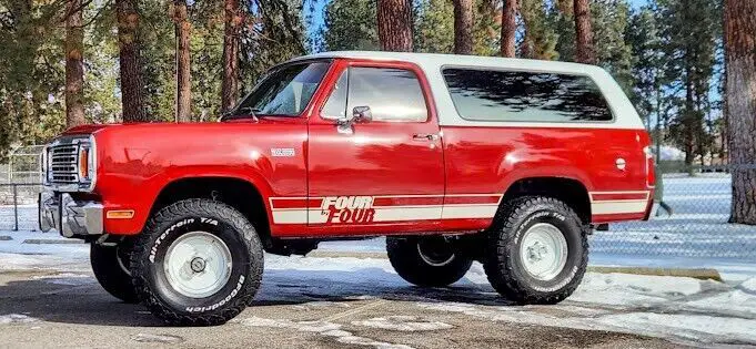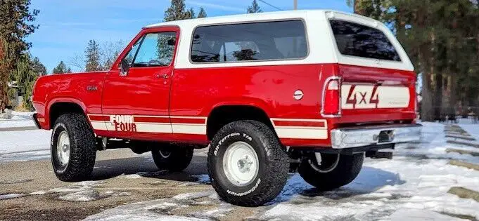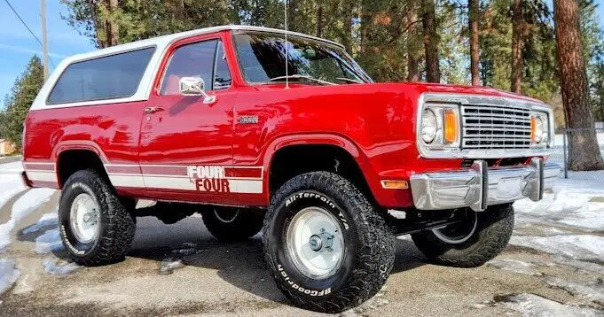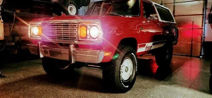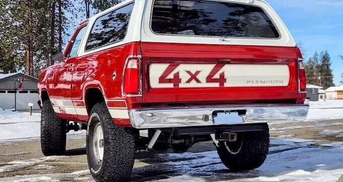 No Reserve! This 1977 Plymouth Trailduster Sport 4x4 is finished in its factory color "Brite Truck Red" paint with an all new red interior with wood grain door panels, and center console. The power is provided by a strong running 383 Big Block mated to a 4 speed manual transmission and a dual-range transfer case. The hard top is fully removable! Optioned equipment includes sport mirrors, a 35-gallon fuel tank, tand the Sport package consisting of deluxe vinyl bucket seats, woodgrain dash and door panels. The center console has been refinished with a aluminum lid, and macho graphics have been added, rare factory roll bar and more. This is an exceptional, rust free Trailduster that runs, drives, stops like it’s right off the showroom floor. Clean title.