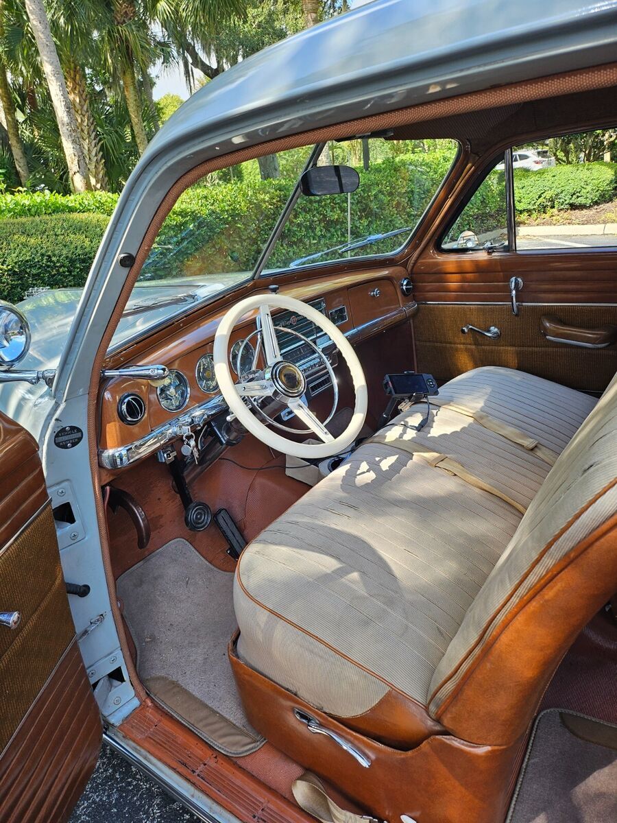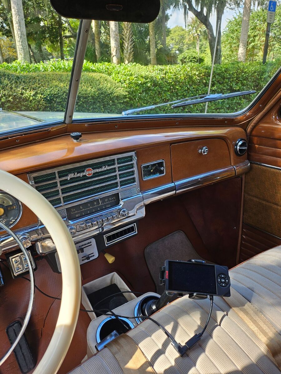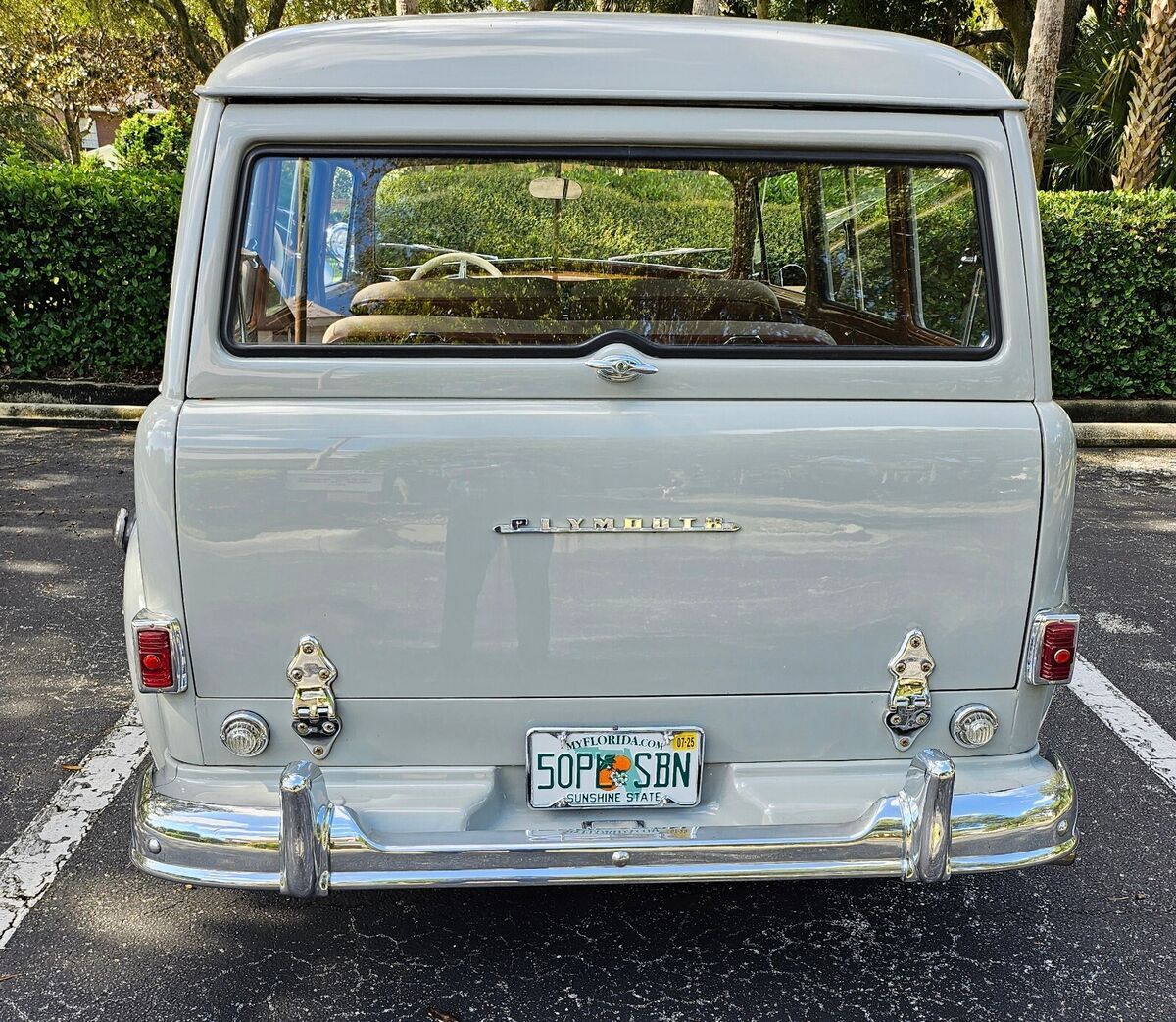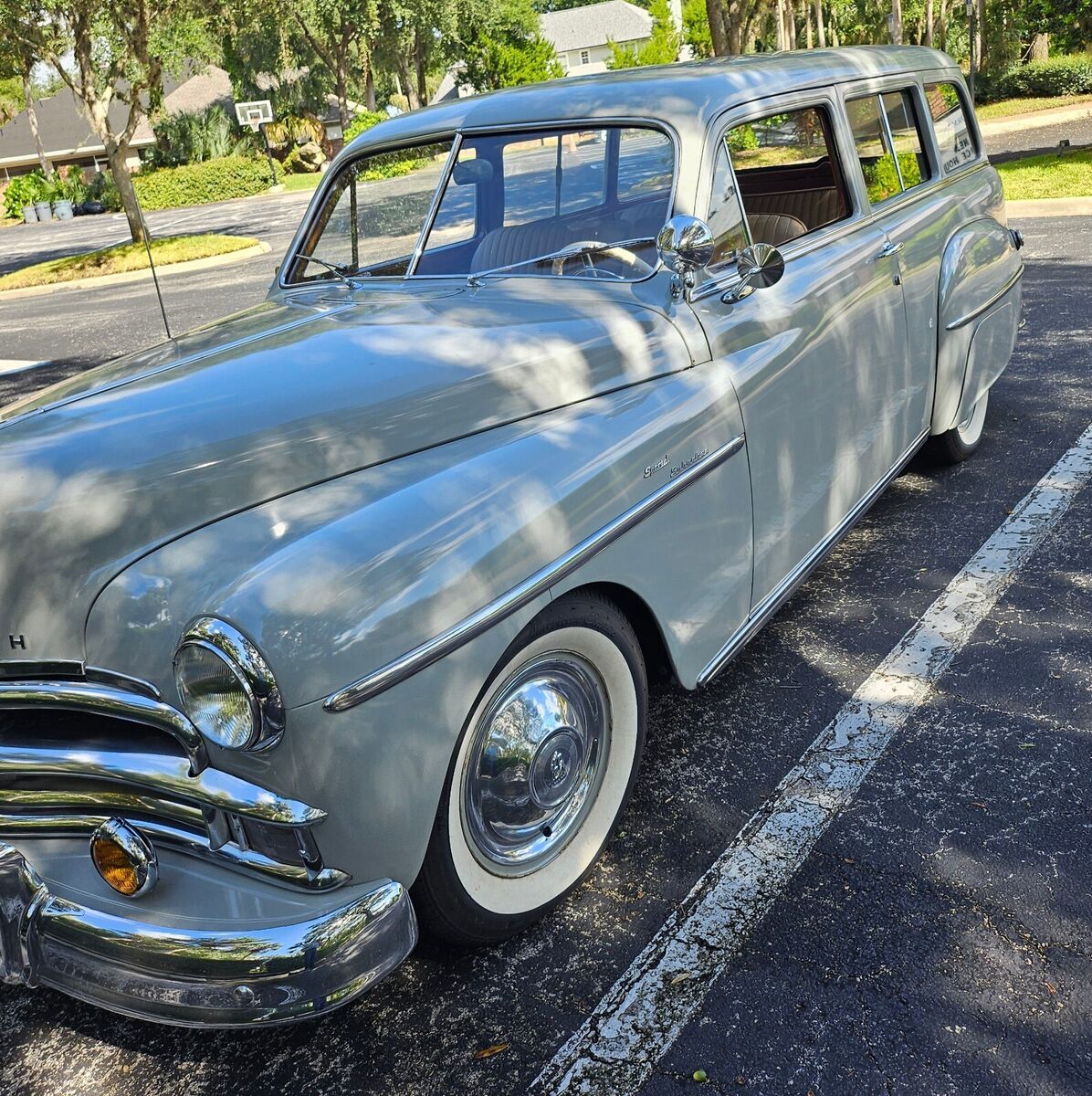 This 1950 Plymouth Special Suburban wagon was in a California collection for many years and was featured in an article in the August 1993 issue of Car Collector magazine. It was described as “faultless quality in a plain gray wrapper.” The plain gray wrapper is still there. The body, frame and bright work are all original and in pristine condition. I bought the car a few years ago and decided to bring it into the 21st century. I had the car shipped to St. Louis to a specialty shop and had it modified to provide all the comforts that we expect today: new engine (replaced the inline 6 with a rebuilt 318 V8), EFI, Automatic Transmission, Air Conditioning, Power Steering, Mustang II Front End, Power Brakes (Disc on front), Power Windows. It has an aluminum radiator with electric cooling fan, alternator, 12-volt system throughout the car, electric windshield wipers, rebuilt dashboard instrument cluster, coil over springs front suspension, rebuilt rear leaf springs, reworked differential, rebuilt drive shaft. It has new steering wheel made especially for this car; tilt steering column, back up lights, custom dual exhaust, original radio modified for AM/FM (has the look of the original), new American Classic wide whitewall radial tires plus spare, new headliner and new door panel inserts to match the headliner, new matching floor mats, installed seatbelts. I replaced the driver-side door glass (was delaminating).
