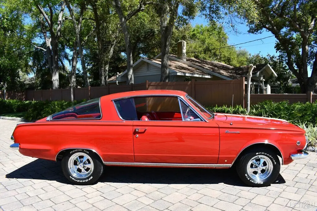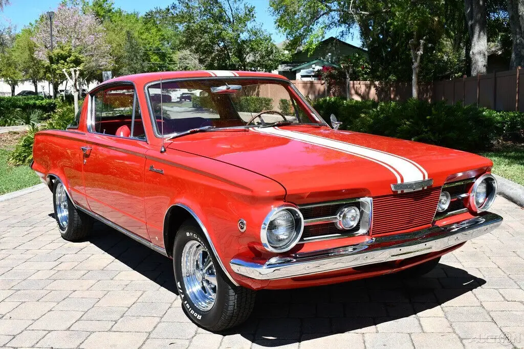 Remarkable1965 Plymouth Barracuda 273cid Commando V8 Enginew/ 4 bbl CarburetorFactory 4 Speed Manual TransmissionBright Red ExteriorRally StripesRed Bucket SeatFactory HD SuspensionLargest Rear Window at the Time!Amazing Chrome BumpersRuns and drive like it looks.