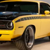While the term “restoration” can be a little flimsy sometimes, that is not the case here. This project was a true nut-and-bolt effort starting with a straight, rust-free Barracuda donor car. The underside was painted to match the exterior and looks amazing; you don’t get this treatment very often! A proper AAR fiberglass hood was fitted along with front eyebrow spoilers and a rear duck tail. Note the body-colored bumpers which really look great on the first year E-body. Of course, it also has the unmistakable AAR strobe stripe graphics and side exit exhaust. It rolls on fabulous 15” Rallye wheels with BF Goodrich tires (235/60 front, 255/60 rear).