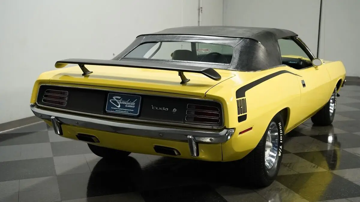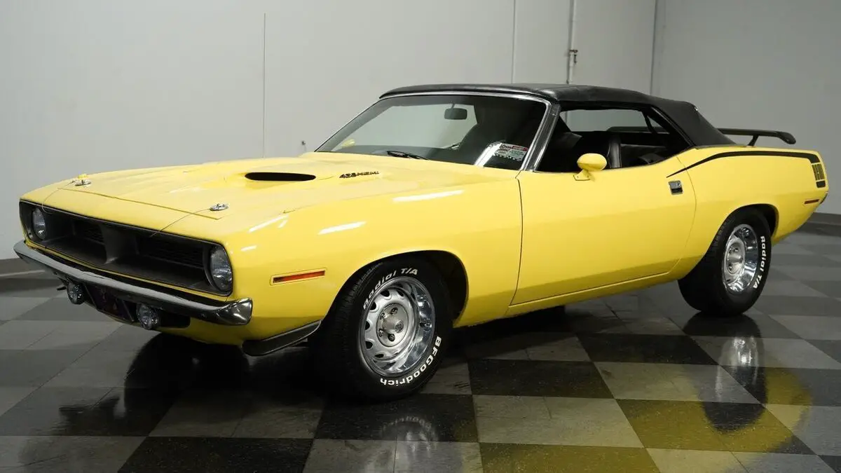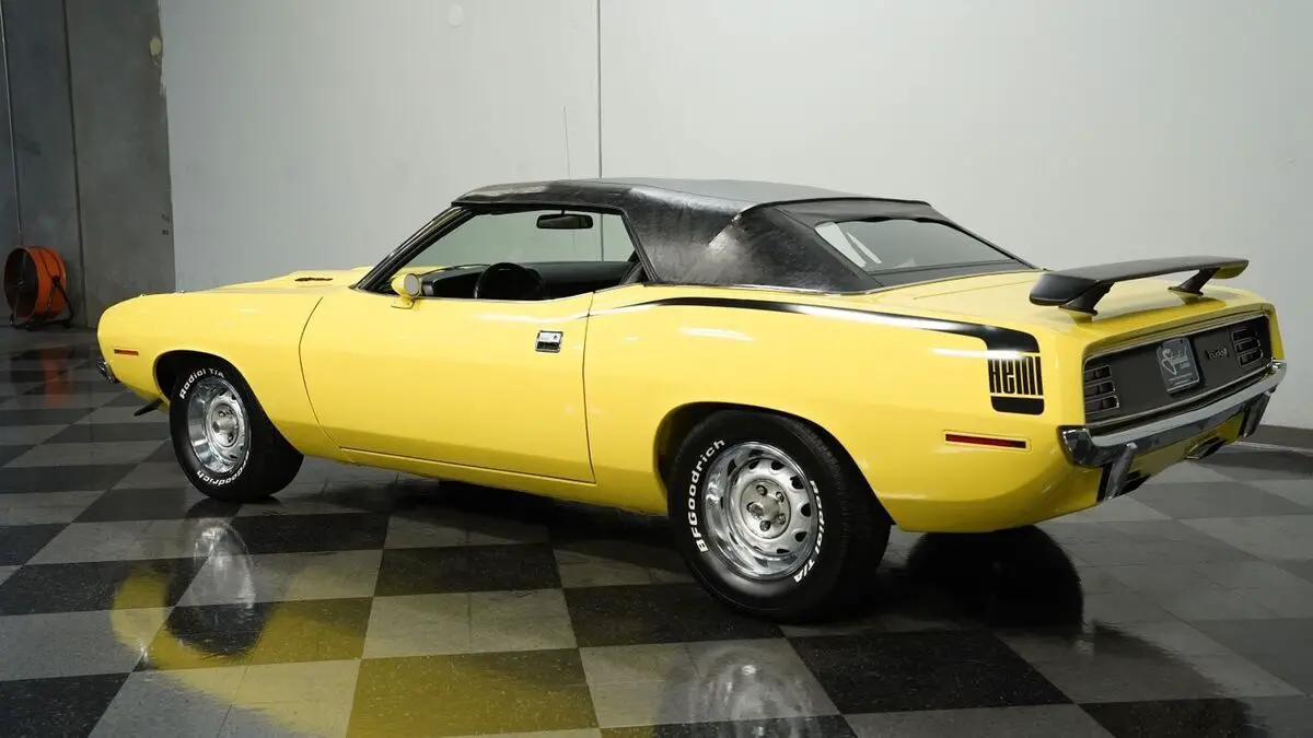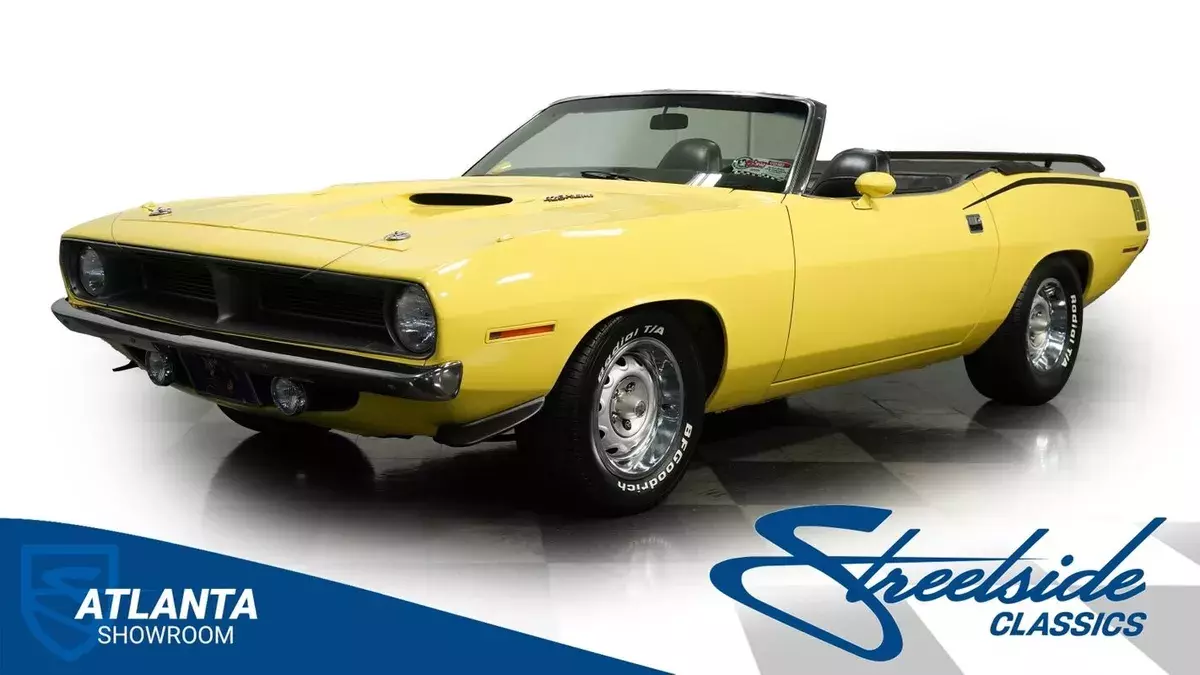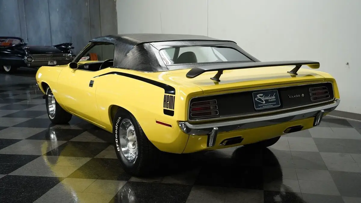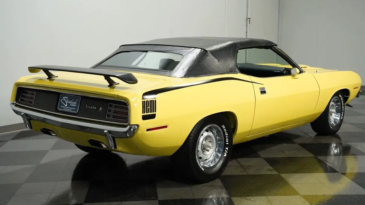 Vehicle Original VIN : BH27G0B198001• 472 HEMI V8 Crate Engine • 4-Speed Automatic Transmission • Holley Sniper Electronic Fuel Injection • Holley Sniper Distributor and Ignition • Long Tube Headers • Dynomax Dual Exhaust • Factory Cooling System • Power Disc Brakes • Upgraded Rear Sway Bar • A-Arm with Shocks Front Suspension • Leaf Springs with Shocks Rear Suspension • Factory Rear End • Lemon Twist Yellow Paint • Black Hemi Decals • Black Leather Convertible Top with Glass Rear Window • 15" Rallye Wheels in 245/60R15 Front, 275/60R15 Rear Tires • Spacesaver 15" Spare Tire • Black Interior with Leather Bucket Seats • Power Steering • Air Conditioning • Pioneer AM/FM Single CD Radio with USB and AUX • Console Shifter • 5-Digit Odometer