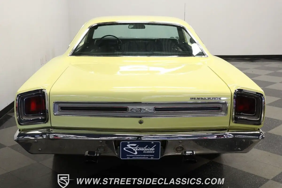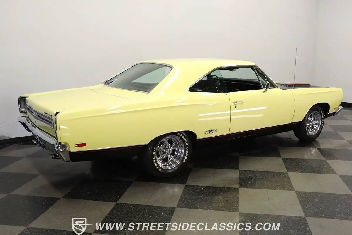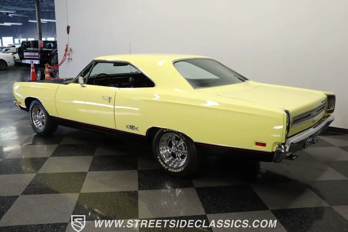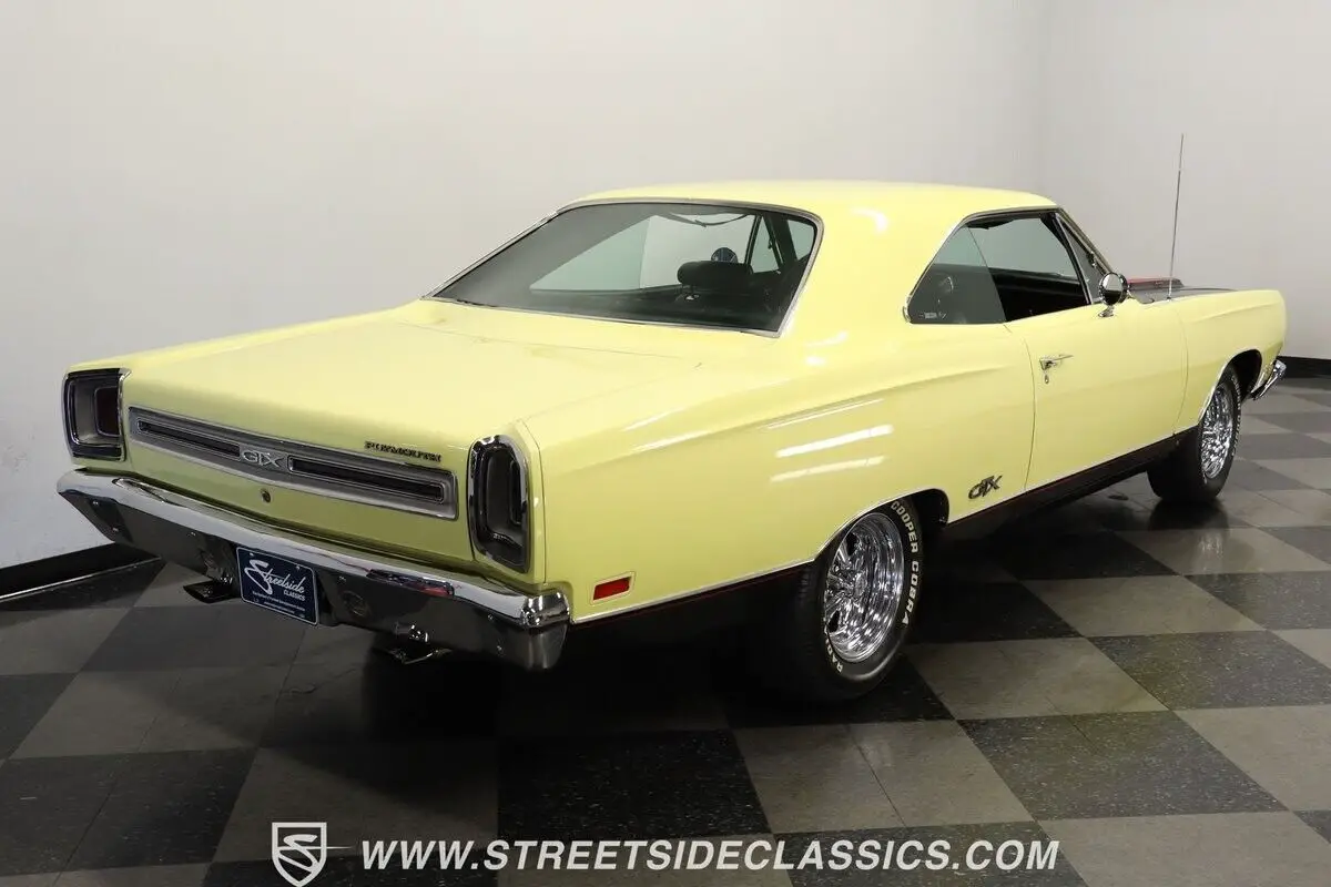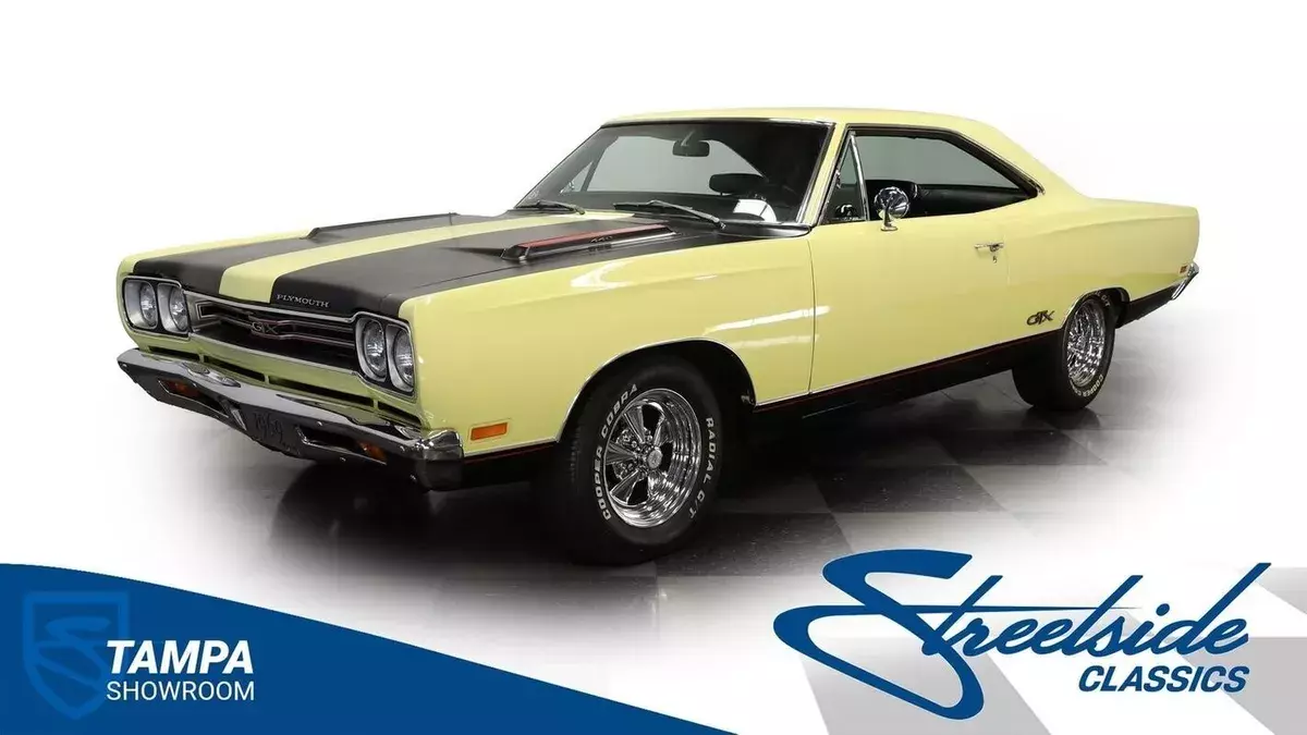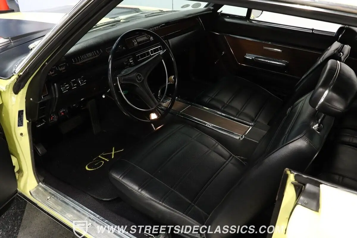 Vehicle Original VIN : RS23L9G2115644913-TPA 1969 PLYMOUTH GTX HIGHLIGHTS: • Numbers-matching 440 Super Commando V8 Engine • A727 TorqueFlite 3-Speed Automatic Transmission • Holley 4-Barrel Carburetor • Borgeson Power Steering • Power Front Disc Brakes • Flowmax Exhaust System • R134a Air Conditioning System • Sunfire Yellow Paint • Black Accent Stripes • 15" Cragar Wheels with Cooper Cobra Tires - 215/70R15 Front, 255/60R15 Rear • Chrome Bumpers and Trim • Black Interior with Bucket Seats • Center Console • Factory Gauges • AutoMeter Engine Temperature and Oil Pressure Gauges • AM Radio • Power Steering • Original Rally Wheels with F70-14 Polyglas Redline Tires • Owner's Manual • Service Manual • Build Sheet • Body Tag Documentation