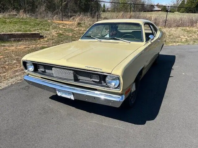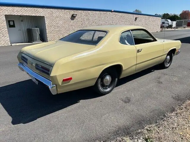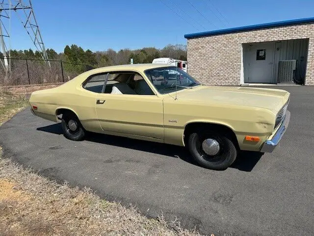 1972 PLYMOUTH DUSTER Slant Six Auto runs and drives good only shows 60,000 miles I am told its original by the previous old man owner and I believe it. This is a basic manual brake, manual steering car, but it did have A/C (not working) NEW carb, radiator, master cylinder, alternator, gas tank, tires and MORE. Rock Solid Car, solid floors solid trunk pan. appears to be mostly original paint still has the Original selling Texas dealer sticker on the tail panel. Perfect car for a late model hemi swap! Clean NC title in my name.TERMS OF SALE car is sold as is with no warranty whatsoever$500 non refundable deposit due immediatelyrest of payment due within 48 hours of auction close by either bank to bank wire transfer or cash in person. NO CHECKS OF ANY KIND WILL BE ACCEPTED OR HELD TILL CLEAR. Thanks for looking!