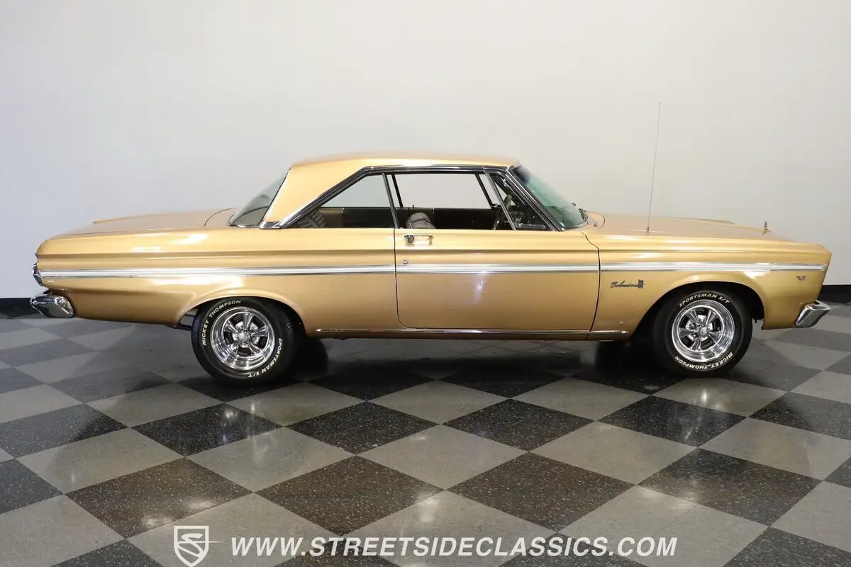 Vehicle Original VIN : R3551389025056-TPA 1965 PLYMOUTH BELVEDERE II HIGHLIGHTS: • 318 V8 Engine • 3-Speed Automatic Transmission (A727 TorqueFlite) • Edelbrock 4-Barrel Carburetor • Dual Exhaust • Flowmaster Mufflers • Factory-Style Manifolds • Air Shocks (Rear) • Torsion Bar Suspension (Front) • Leaf Spring Suspension (Rear) • Gold Metallic with White Accents • 15" Wheels in 215/70R15 Front & 255/60R15 Rear Tires • Chrome Bumpers • Factory Trim • Gold Vinyl Interior • Bench Seats • Factory AM Radio • Factory Gauges • Power Steering • Air Conditioning (Converted to R134) • Column Shifter • Owners Manual • Receipts