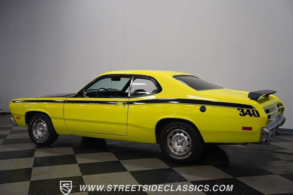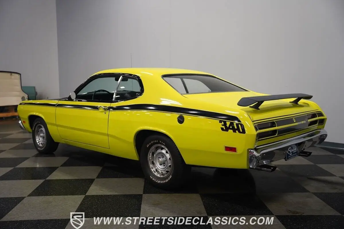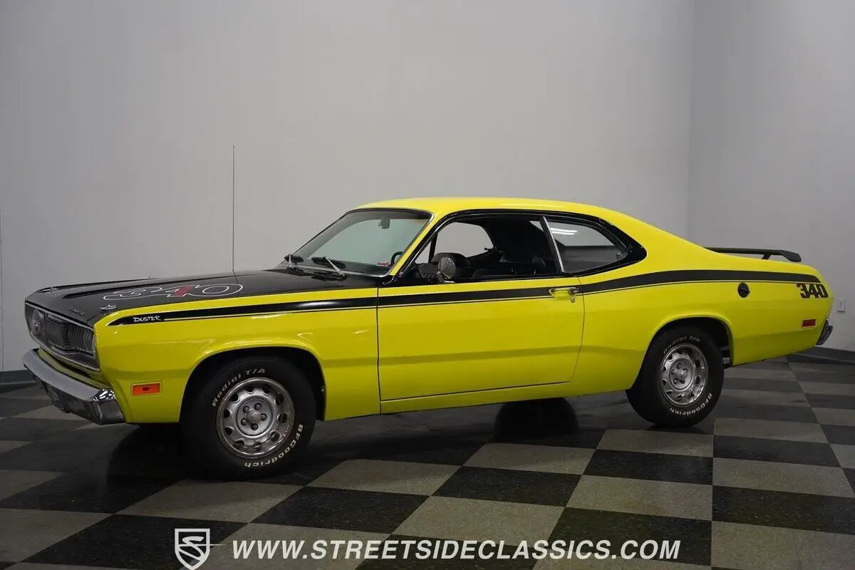 Vehicle Original VIN : VL29C1B340542HIGHLIGHTS: • 360 V8 Engine • 727 Torqueflite 3-Speed Automatic Transmission • 750 Holley Double Pumper Carburetor • Dual FlowMaster Exhaust • MSD Electronic Distributor • MSD Ignition Box • MSD Wiring • Power Steering • 7 1/4 Rear End • Yellow Paint with Black Accents • Black Painted Hood • Painted Duster Stripes • 340 Decals • 14" Factory Style Wheels in P205/70R14 Front, P225/70R14 Rear Tires • Rear Spoiler • Chrome Bumpers • Black Interior with Bench Seat • Floor-Mounted Ratchet Shifter • Sony AM/FM/CD Head Unit with AUX Input • Wood Grain Trim • Auxiliary Gauges Under Dash
