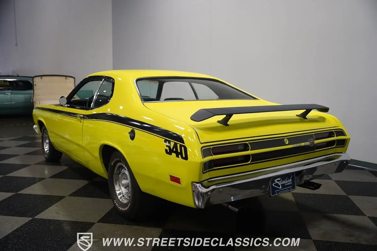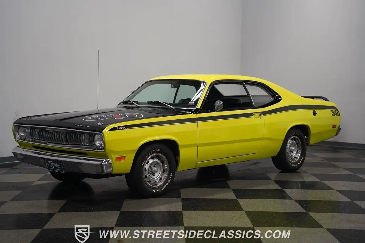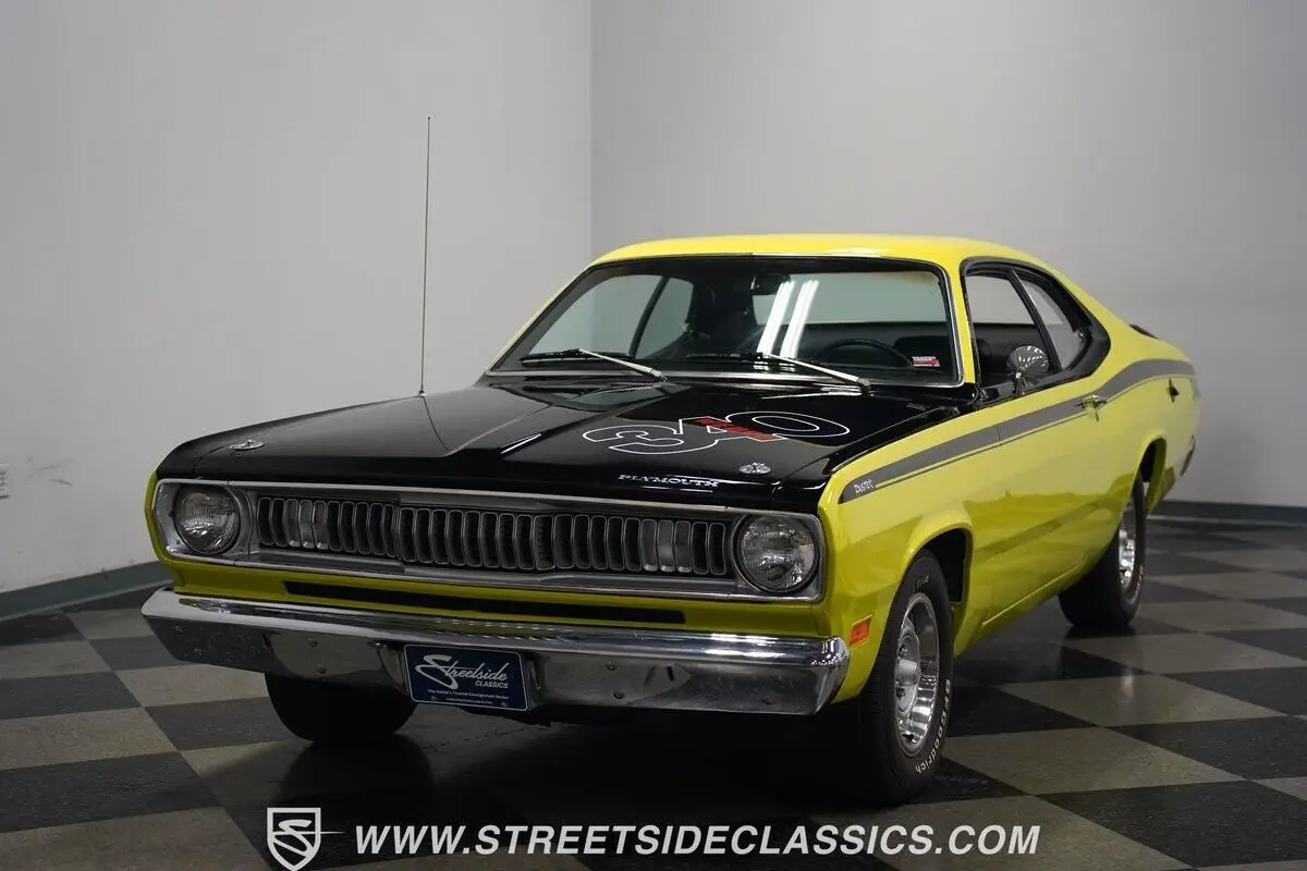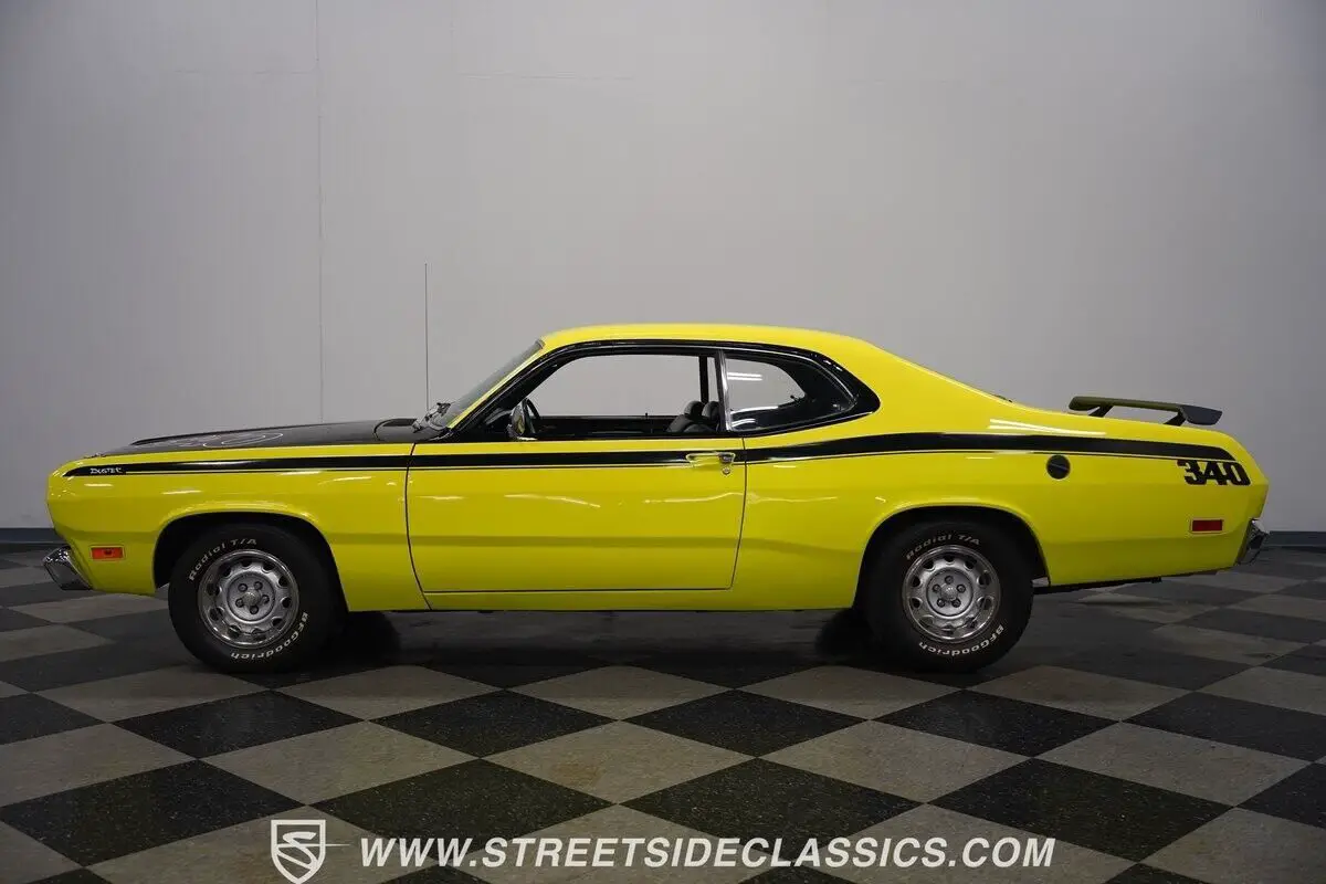Vehicle Original VIN : VL29C1B340542HIGHLIGHTS: • 360 V8 Engine • 727 Torqueflite 3-Speed Automatic Transmission • 750 Holley Double Pumper Carburetor • Dual FlowMaster Exhaust • MSD Electronic Distributor • MSD Ignition Box • MSD Wiring • Power Steering • 7 1/4 Rear End • Yellow Paint with Black Accents • Black Painted Hood • Painted Duster Stripes • 340 Decals • 14" Factory Style Wheels in P205/70R14 Front, P225/70R14 Rear Tires • Rear Spoiler • Chrome Bumpers • Black Interior with Bench Seat • Floor-Mounted Ratchet Shifter • Sony AM/FM/CD Head Unit with AUX Input • Wood Grain Trim • Auxiliary Gauges Under Dash