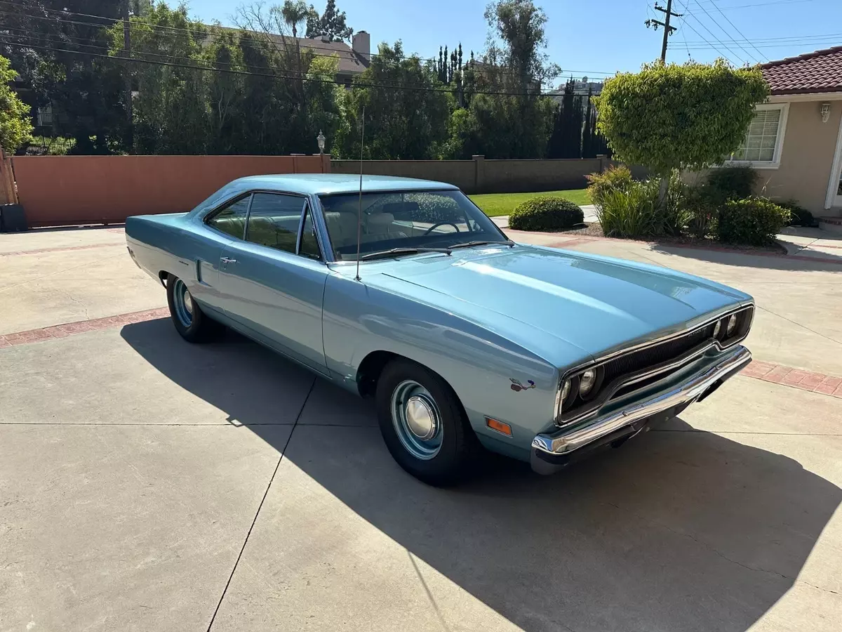 Up for sale is my 1970 Road Runner. It has a 383 motor, with a 727 automatic on the column, bench seat, power steering, power brakes and air conditioning. I purchased the car in 2012 in San Diego from a Chaplin in the Navy. He was the second owner and purchased it in 2000. I believe it was originally from Washington but came into California early in its life. It has the blue California plates. There is an original California pink slip with the paperwork which is dated in 1972. It was a very original car when I purchased it. I have the build sheet for the car. The prior owner had done a lot of work on the car while he owned it. It is a matching numbers car. He had rebuilt the motor and trans. He had the car painted the original color, Ice Blue Metallic. He redid the interior, dash and gauges. All the gauges work including the tach and clock. It is a beautiful car. After I purchased it I had an engine builder friend build a completely new motor with the original block. He is a well know guy who has built hundreds of high performance motors. He would be happy to talk to you about the build. It has all the best parts including JE pistons, Edelbrock heads, Crane roller cam, comp cams roller rockers and TTI shorty headers. The heads were ported, the intake was port matched and all the components were balanced. It was built to run on pump gas. I added the factory electronic ignition to replace the points system. It has a new aluminum radiator that looks like the factory unit. I added a Hughes torque converter that has a slight stall to work with the motor. The AC system is complete but has not been refilled after the motor was installed. I have only driven the car about 100 miles on the new motor. I had a local rear end shop rebuild the rear end and added posi. It has 323 rear gears. I added a front disc brake kit from Stainless Steel with a new booster and master cylinder. I also added a vacuum pump from Master Power which is super quick and very quiet. It has adjustable Koni shocks both front and back. The front sway bar had been powder coated and installed with all new parts. You can see from the pictures and video that the car is very nice. It has an upgraded stereo with CD player in the glove box with speaker boxes sitting behind the seats. I did not want to cut any holes in the car. I also added aftermarket temp and oil pressure gauges under the dash. I had the rear wheels made and painted to match the car and the front wheels. They are 15x8. The tires are TA Radials with almost no miles. It has a new gas tank and all new 3/8 fuel lines. There is way too much stuff to even remember. I love working on cars and have been working on it since I purchased it. I buy all the best stuff and do not cut corners.