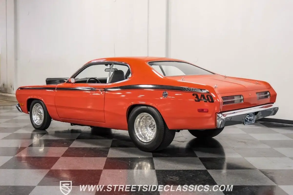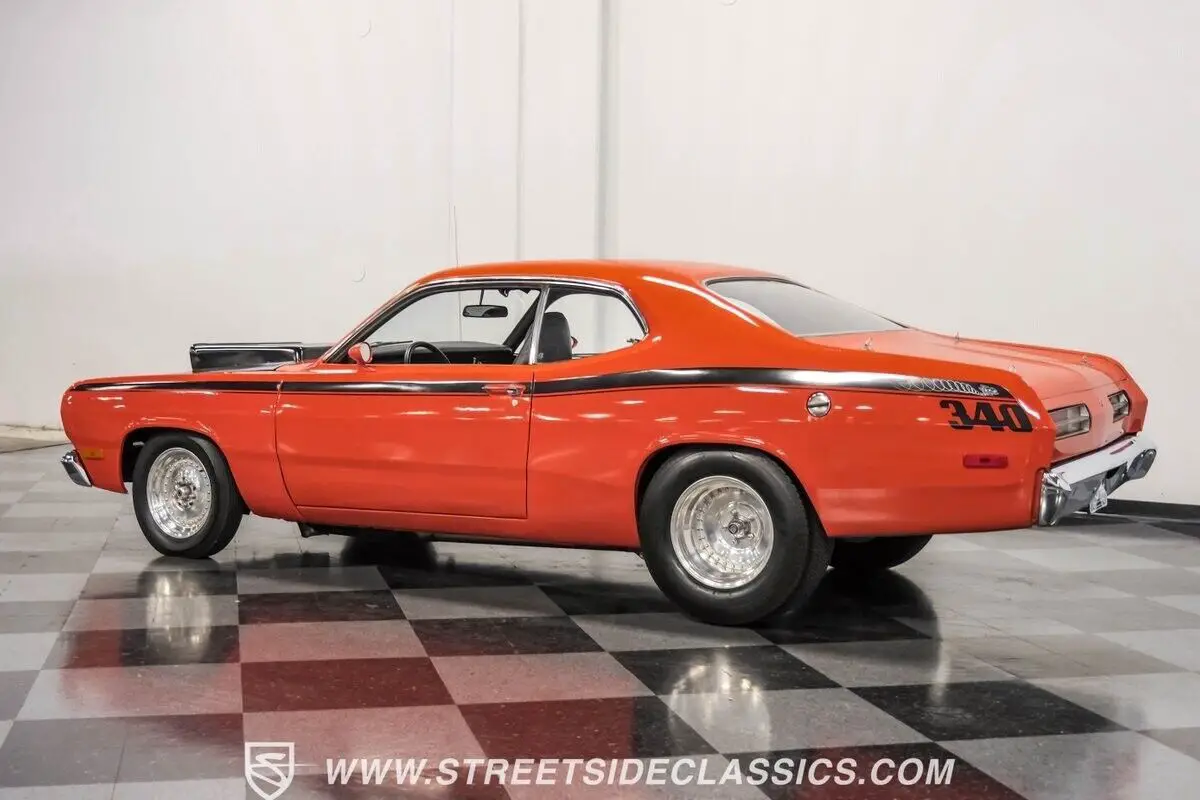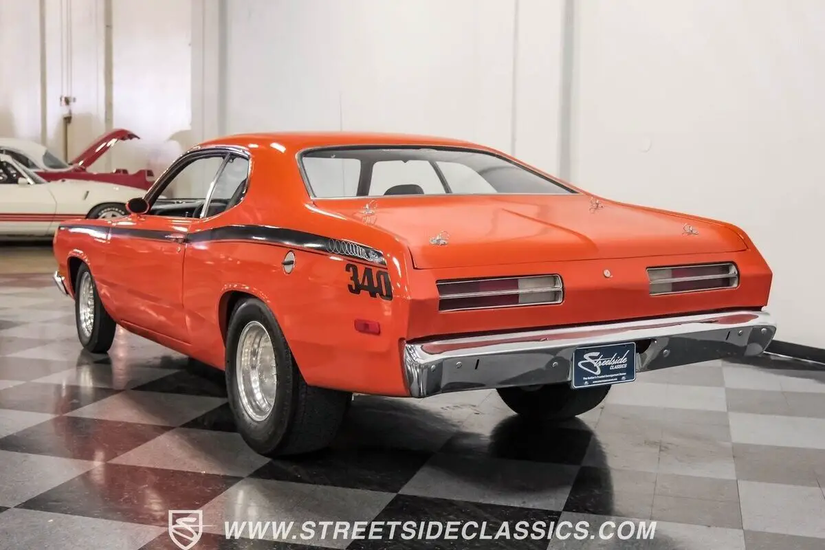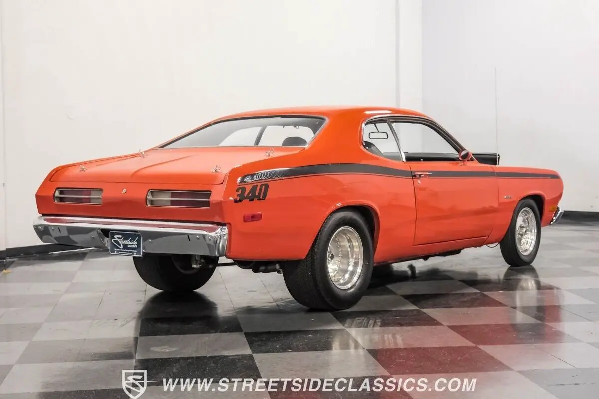 Vehicle Original VIN : VS29H2B371247Packing Mopar's potent 340 V8, this 1972 Plymouth Duster Pro Street displays an aggressive, track-ready stance that makes its performance intentions clear. The orange exterior with black accent stripes and hood create a classic muscle car color combination that demands respect on the street. Large functional hood scoop channels air while the lift-off trunk lid reduces weight for maximum acceleration. Rolling on 15" Centerline wheels wrapped in 5.60-15 PRO-TRAC front tires and N50-15 PRO-TRAC rear tires, this Duster sits perfectly with its competition-inspired stance and race-ready proportions. Black vinyl bucket seats anchor an interior built for serious driving duty. The clean, straight dash houses the stock gauge cluster alongside Bosch under-dash gauges that provide critical engine information. A race-style steering wheel and Hurst shifter with B&M T-handle put precise control at your fingertips. The factory radio remains on display in the dash, maintaining the period-correct appearance. Black carpeting completes the purposeful cabin that's ready for action. The 340 V8 engine delivers impressive power through the 4-speed manual transmission. Performance enhancements include an Edelbrock carburetor, aluminum intake manifold, and long-tube headers flowing into straight pipes for an aggressive exhaust note. The sophisticated suspension system features tubular control arms with coilovers up front and a 4-link with coilovers in the rear, allowing precise handling adjustments. Rack and pinion steering and 4-wheel power disc brakes improve control, while the 9-inch rear end handles the power delivery with ease. HIGHLIGHTS: • 340 V8 Engine • 4-Speed Manual Transmission • Edelbrock Carburetor • Aluminum Intake Manifold • Long-Tube Headers • Straight Pipe Exhaust • Electric Fuel Pump • Aluminum Radiator • Tubular Control Arms with Coilovers (Front) • 4-Link with Coilovers (Rear) • 9-Inch Rear End • Rack and Pinion Steering • 4-Wheel Power Disc Brakes • Orange Paint with Black Decal Stripes • 15" Centerline Wheels • Functional Hood Scoop • Hood Pins • Lift-Off Trunk Lid • Black Interior with Bucket Seats • Hurst Shifter with B&M T-Handle • Factory Dash w/ Bosch Under-Dash Gauge Cluster This 1972 Plymouth Duster Pro Street combines classic muscle car style with serious performance hardware. Built around a Mopar 340 V8, upgraded suspension, and race-ready components, this orange beast offers both street presence and track capability. Call today!